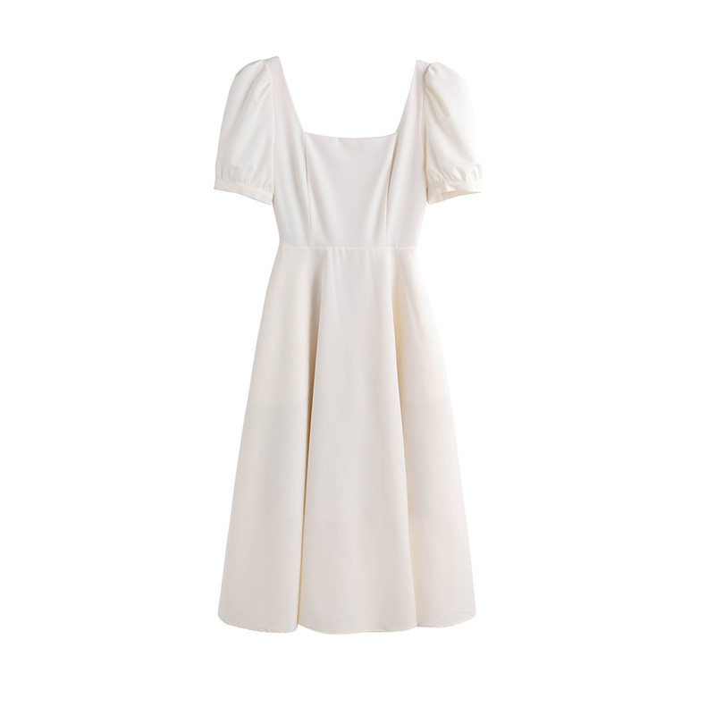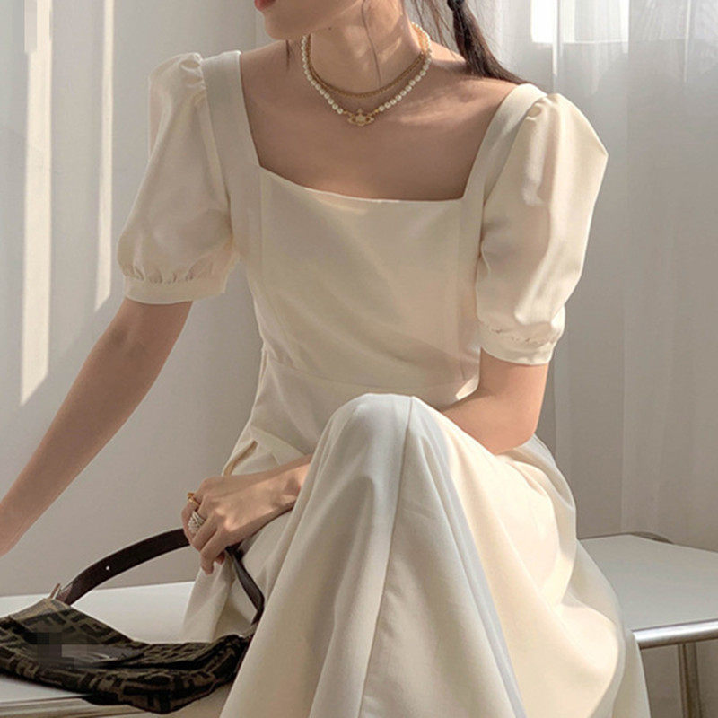 2023夏季新款赫本风短袖显瘦连衣裙女高级设计感A字收腰长款裙子
