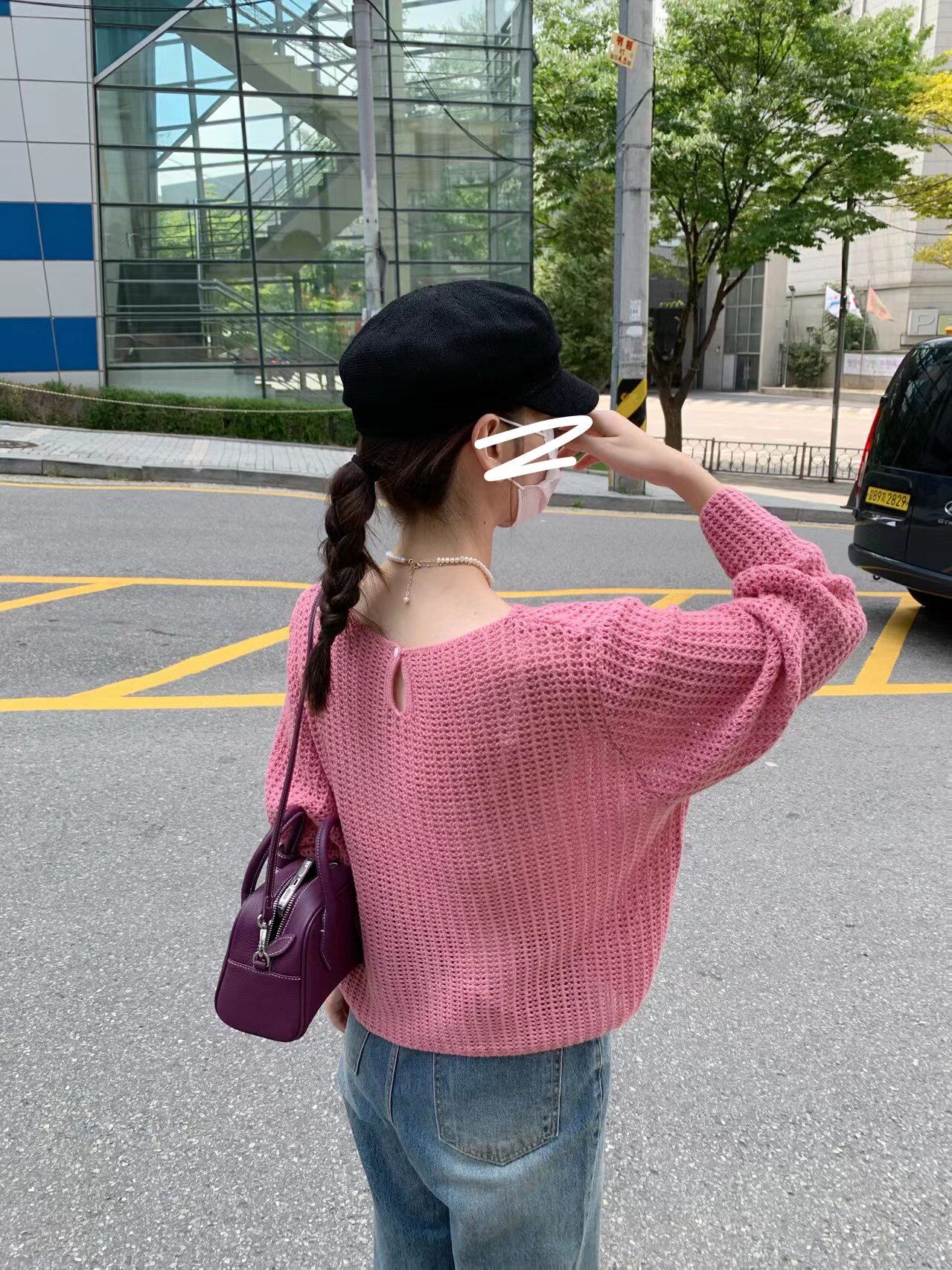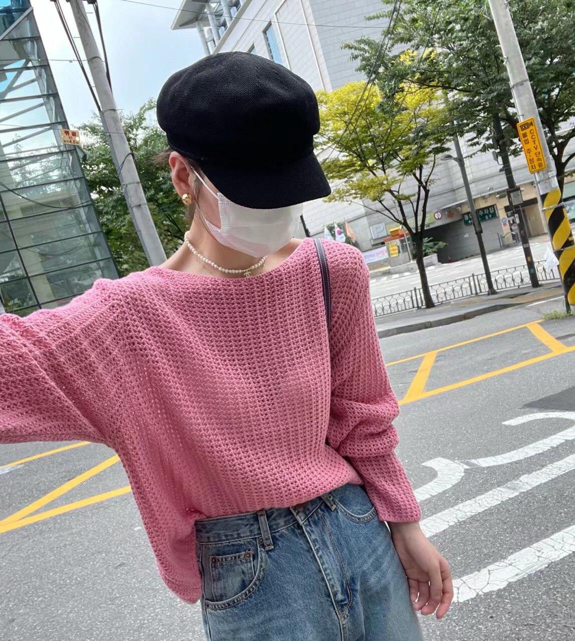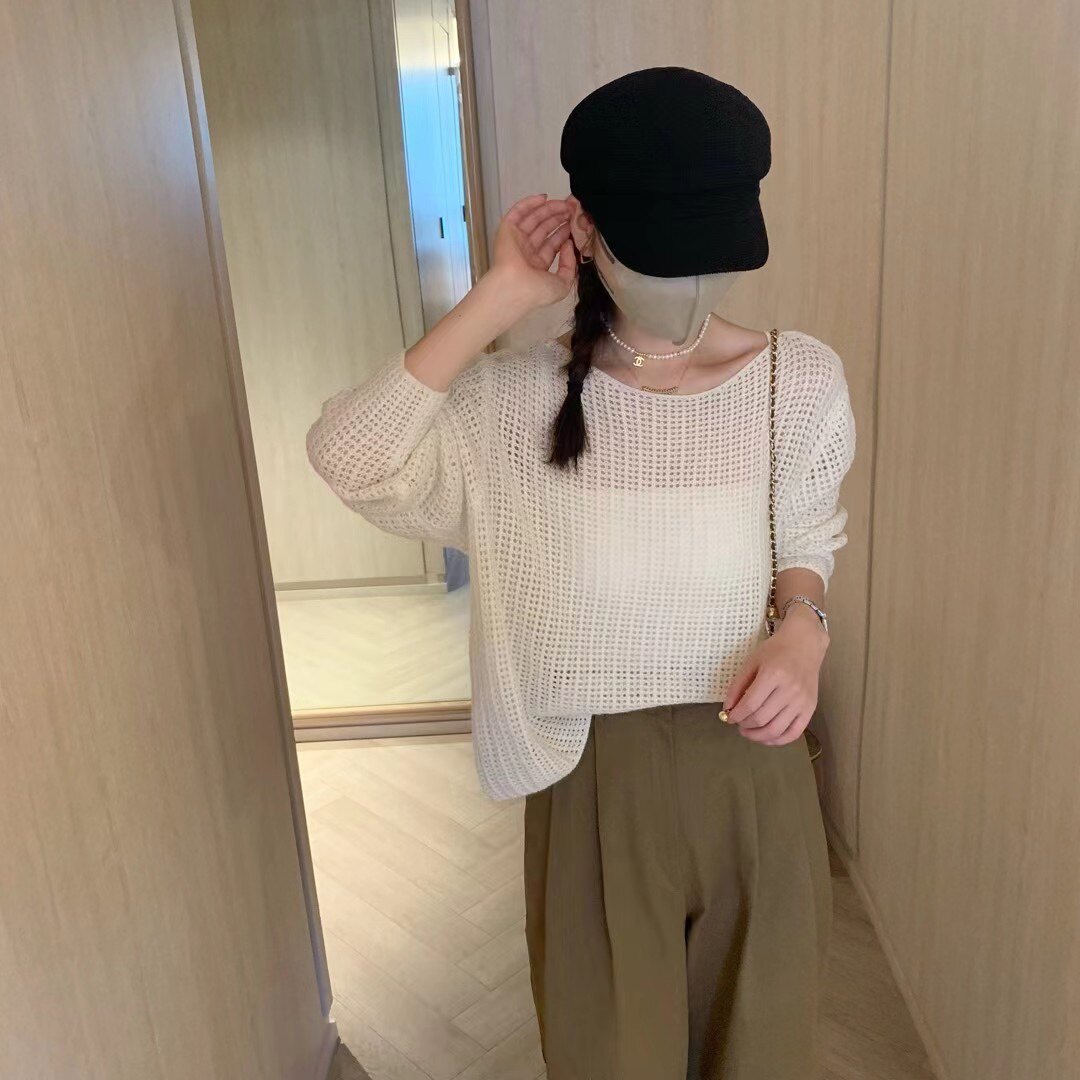 淘宝三番小姐韩国代购,现!韩国东大门正品女装 2023秋冬季新款 华夫格洞洞镂空针织衫