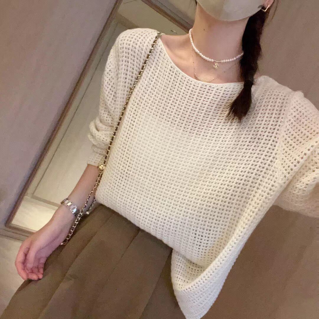 现!韩国东大门正品女装 2023秋冬季新款 华夫格洞洞镂空针织衫