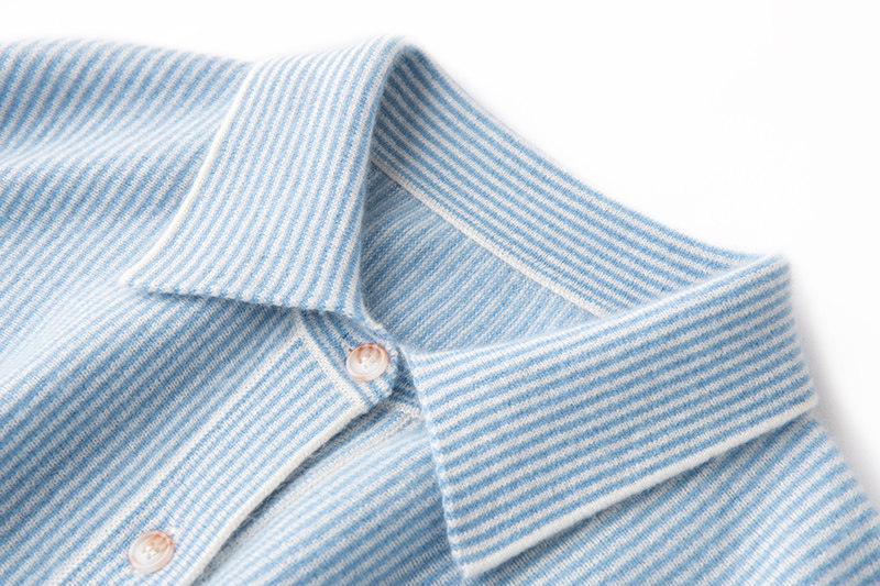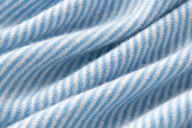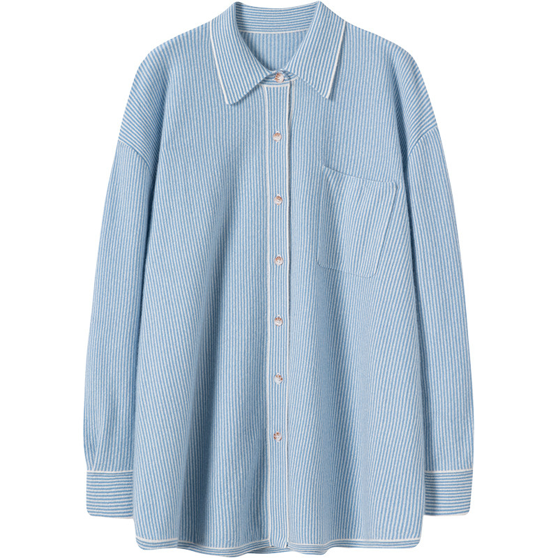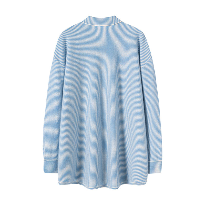 一眼看中!品味BI入!羊绒衫减龄蓝白条纹衬衫羊绒毛衣女宽松开衫