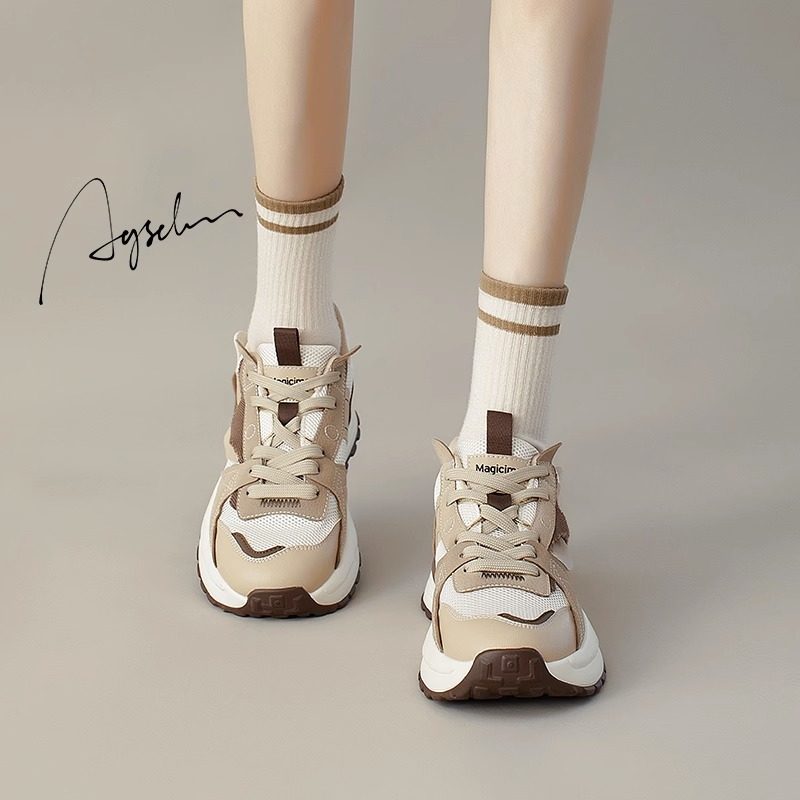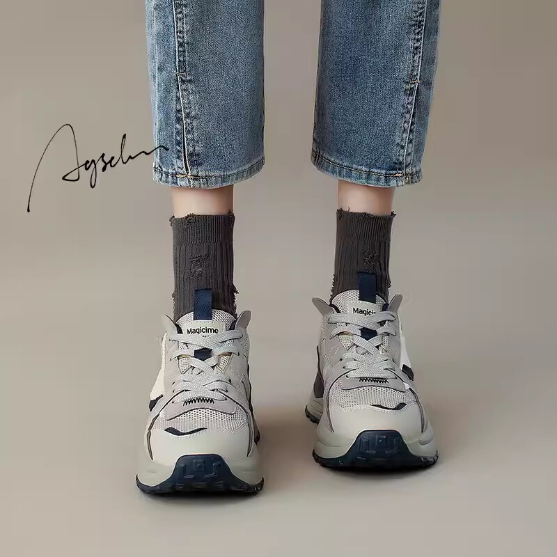 天猫奥古狮登天美专卖,老爹鞋女灰色2023春秋新款厚底爆款阿甘鞋网面透气小众休闲运动鞋