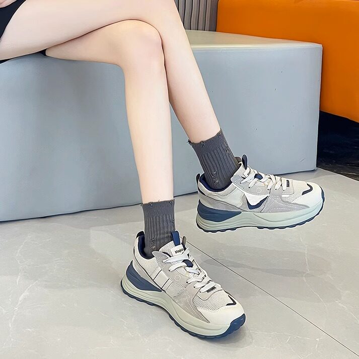 厚底老爹鞋女夏季2023新款百搭爆款透气网面轻便小白休闲运动鞋