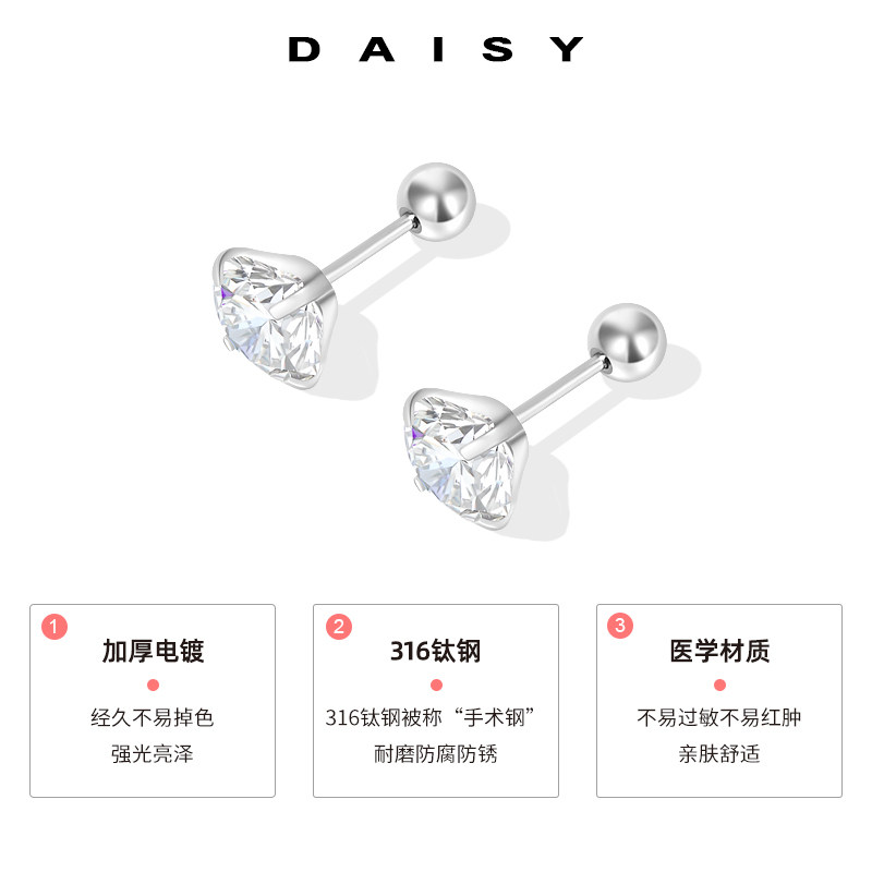 淘宝玩美旗舰店,医用钛钢钻石耳钉女螺丝拧扣耳骨钉养耳洞钛合金耳环耳蜗钉耳饰品