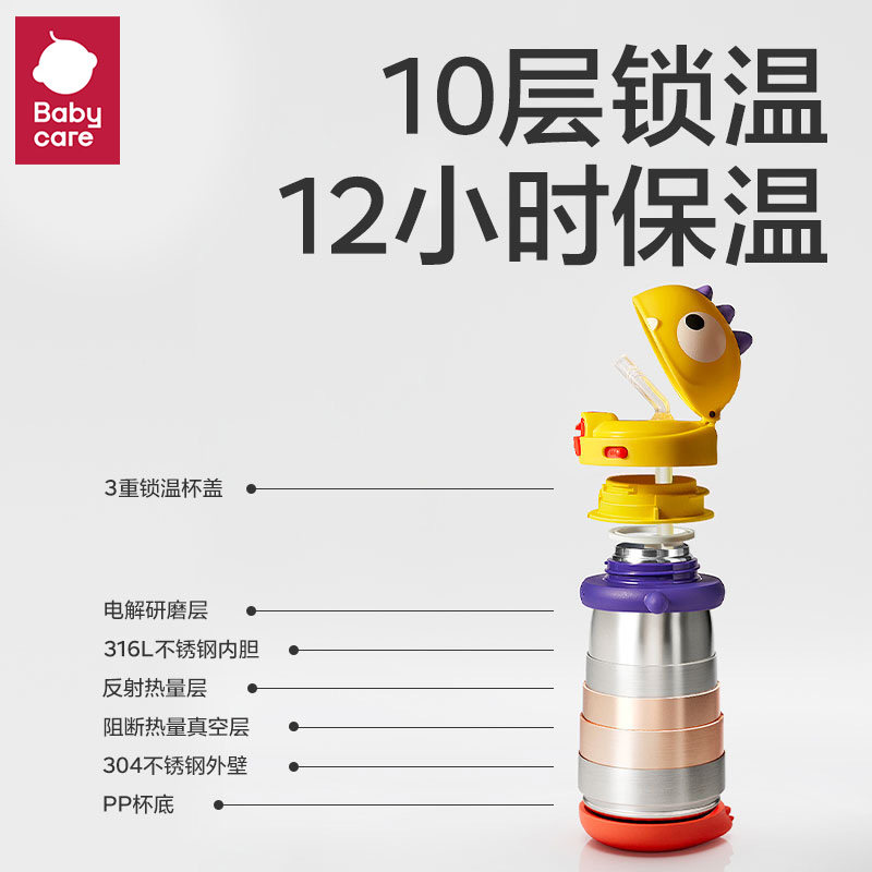 babycare恐龙儿童保温杯婴儿宝宝水杯吸管杯学饮杯外出水壶幼儿园