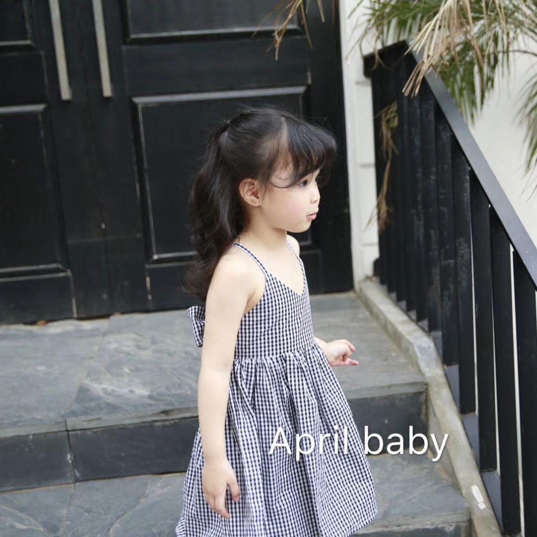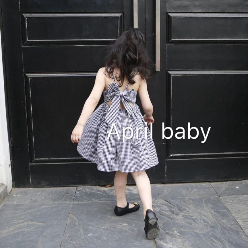 淘宝小小小悦的店,女童连衣裙2023夏季新款韩版童装露背蝴蝶结时尚格子吊带沙滩裙子