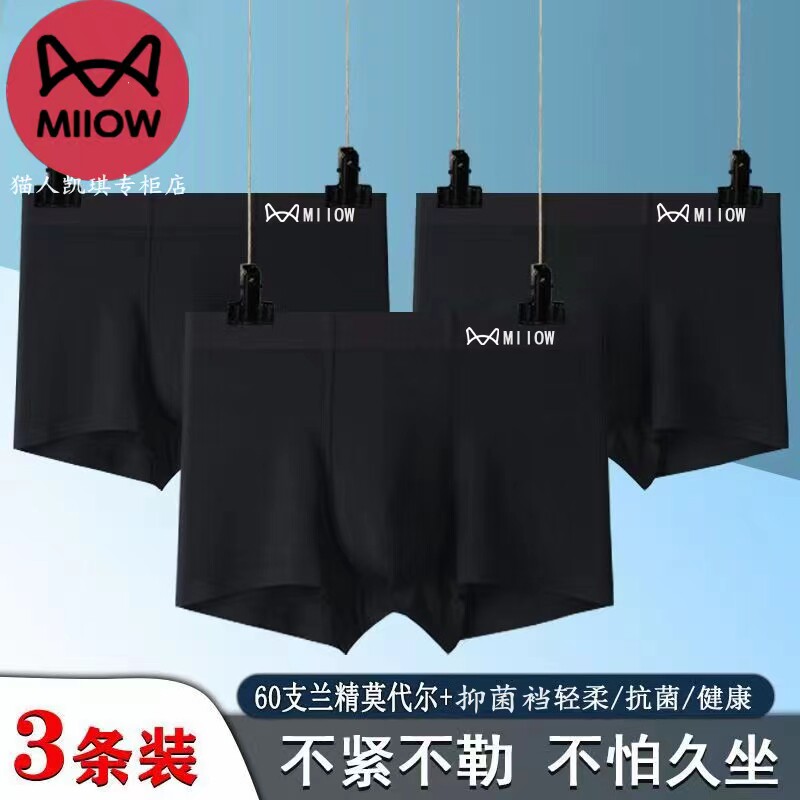 淘宝猫人专柜内裤店,猫人无痕大红色黑色男款内裤60支兰精无痕莫代尔平角四角短裤舒适