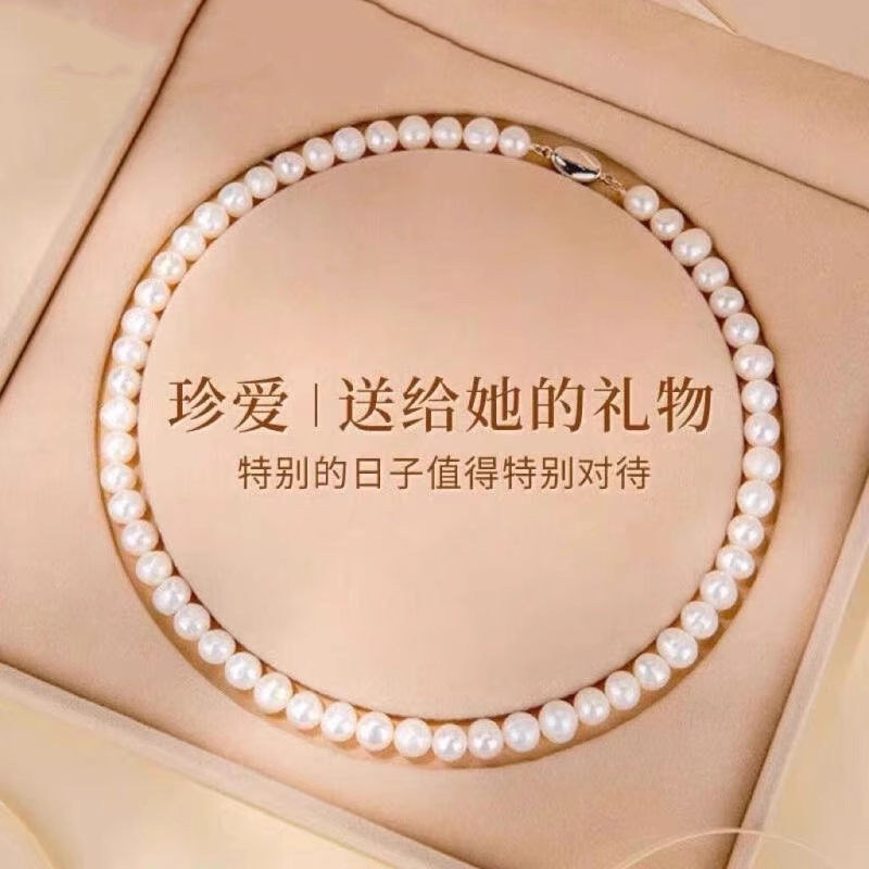 天然淡水珍珠近圆项链母亲节520送女友妈妈婆婆长辈颈链生日礼物