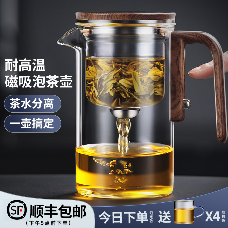 天猫尚言坊旗舰店,飘逸杯泡茶壶茶水分离家用泡茶神器磁吸泡茶器玻璃过滤冲茶壶茶具
