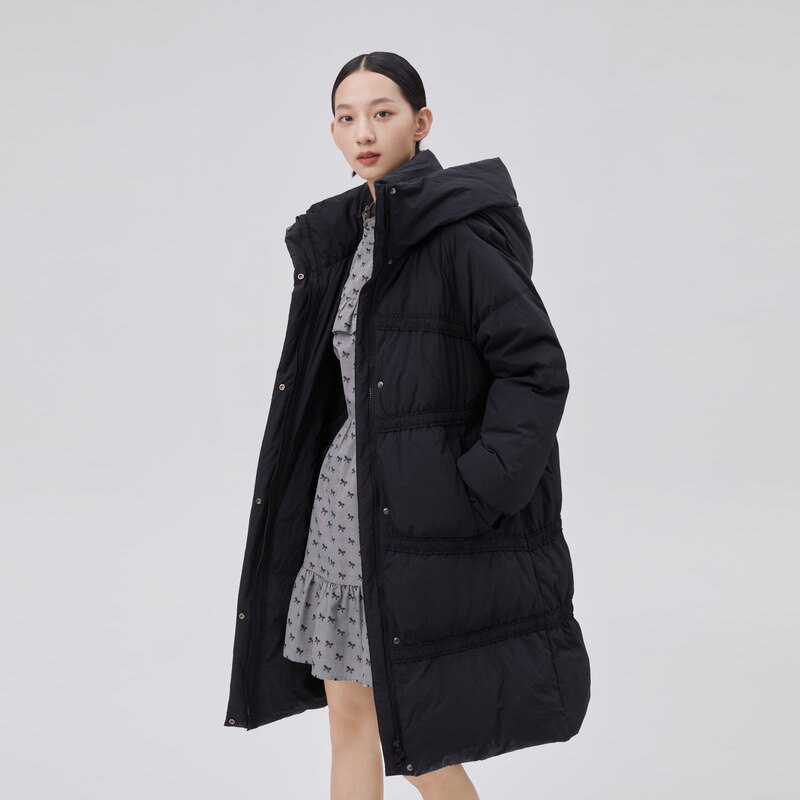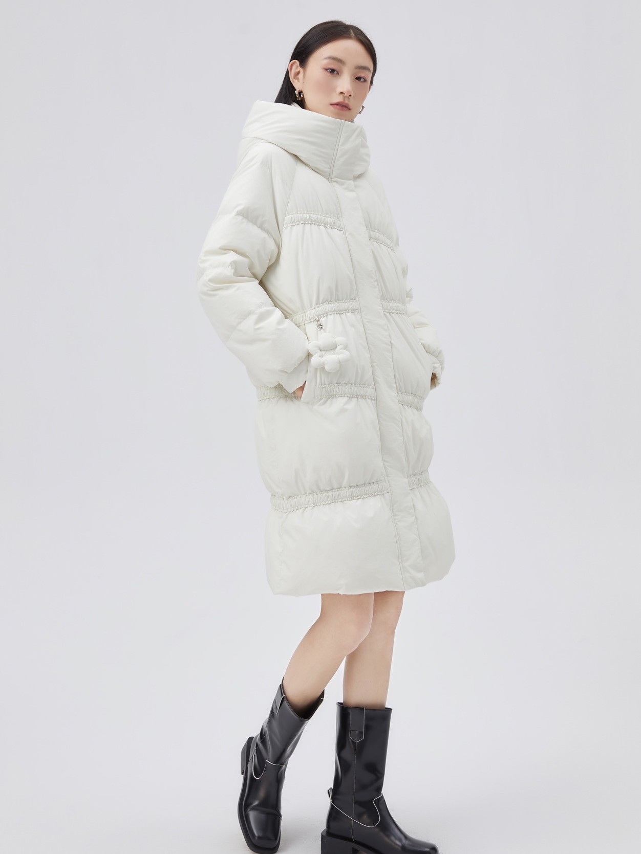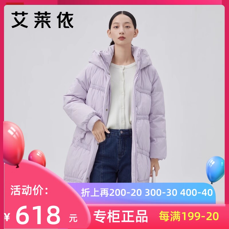 淘宝专柜正品奥特莱斯品牌折扣店,艾莱依冬立体花朵中长款羽绒服女连帽面料舒适细腻简约6022401058