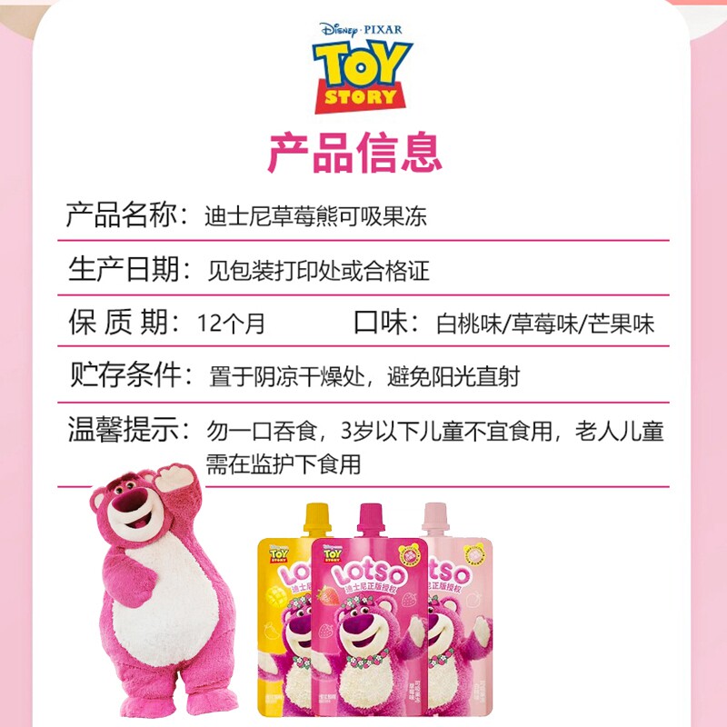 迪士尼草莓熊果冻白桃草莓芒果味可吸果冻正…