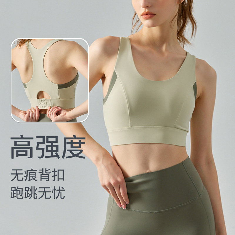 高强度lu同款运动内衣一体式胸垫无痕背扣瑜伽背心防震美背文胸