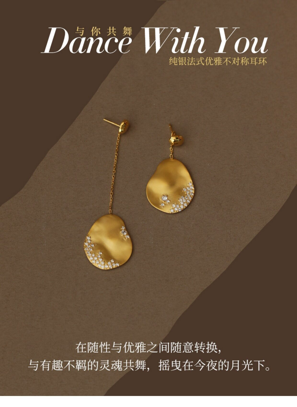 梵灵原创设计款与你共舞不对称耳钉S925纯银饰品耳环仪式感优雅