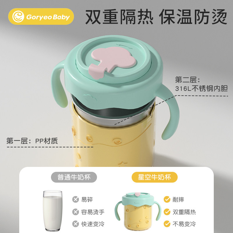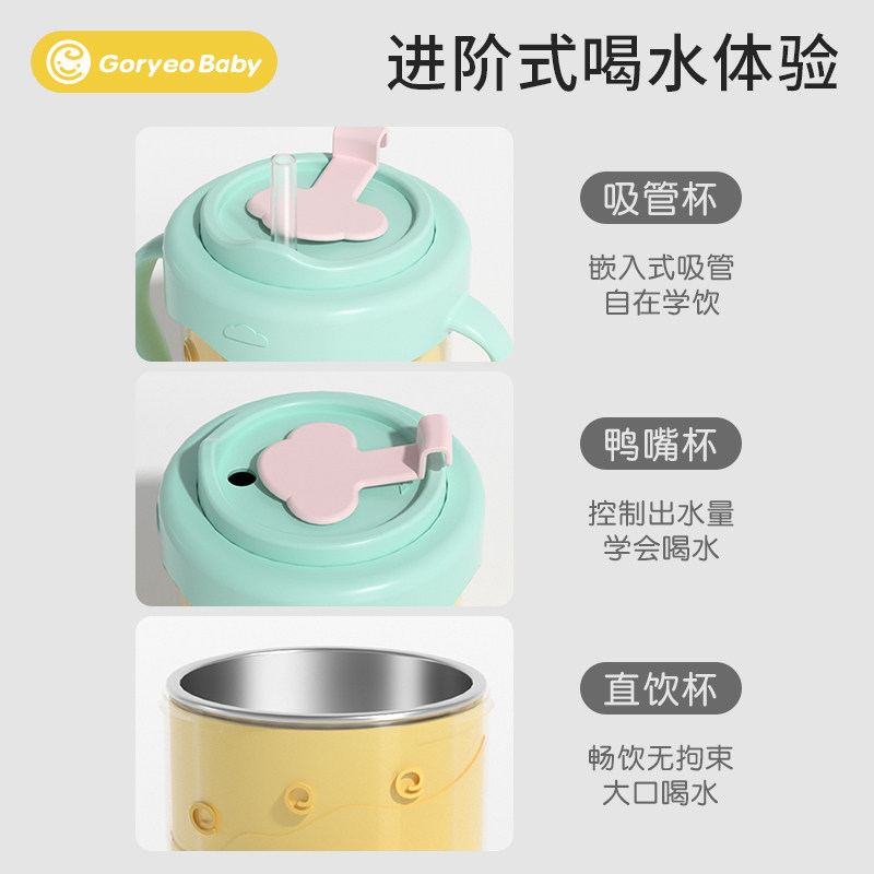 天猫goryeobaby旗舰店,不锈钢吸管杯家用儿童水杯带盖牛奶杯子女夏季可爱喝水茶杯带把