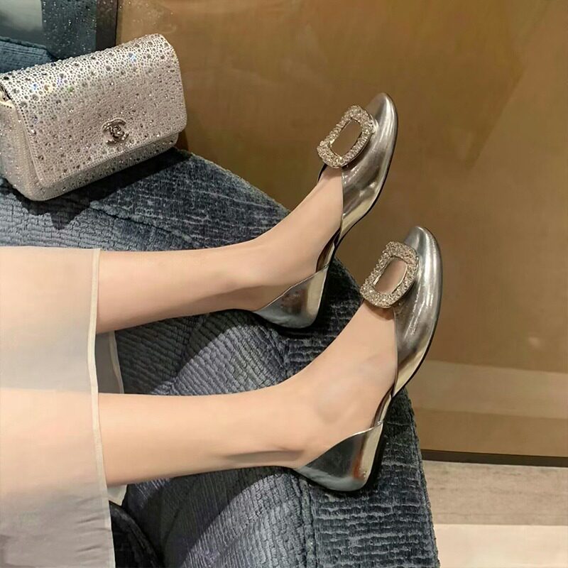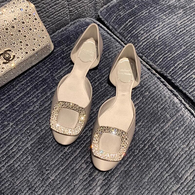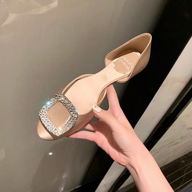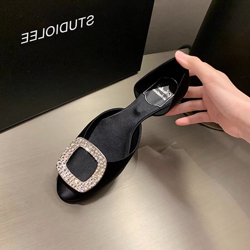 淘宝大叔家高端订制女鞋,葡萄妈Studiolee 法式方钻扣百搭中空圆头平底浅口真丝单鞋女夏季