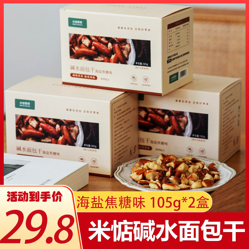 米惦碱水面包干海盐焦糖味105g*2盒烘…