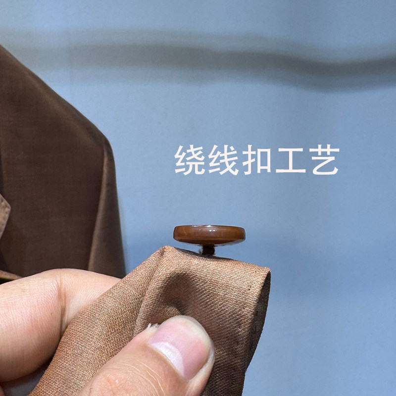 撤柜亚麻面料大码休闲纯色美拉德4粒扣系扩…
