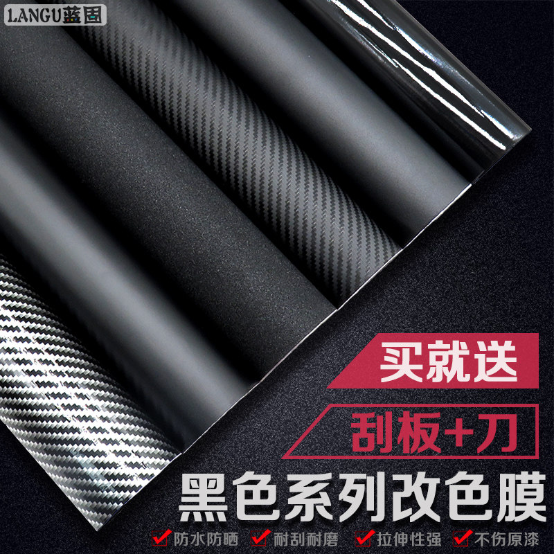 天猫4873036108088226979,汽车改色膜碳纤维贴纸贴膜车身车顶黑色车衣内饰中控网摩托车AB柱,旗舰品质 带导气槽 买就送:刮板+美工刀