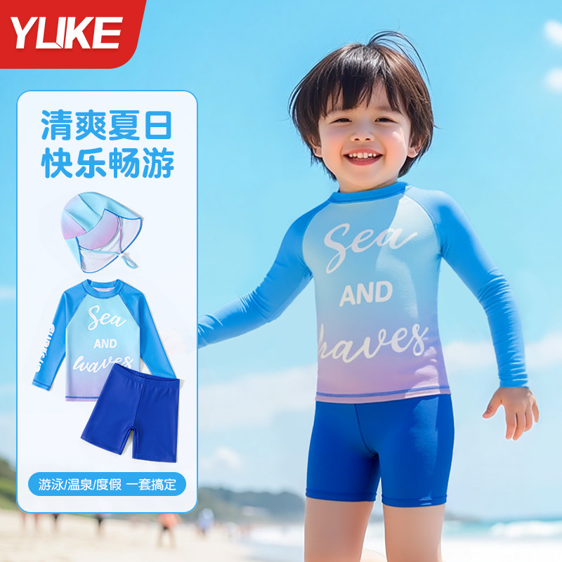 儿童泳衣男童2025新款夏长袖分体防晒游泳衣男孩宝宝专业训练泳装