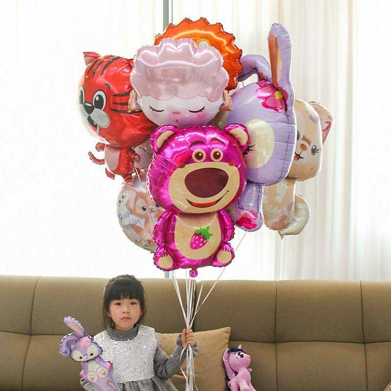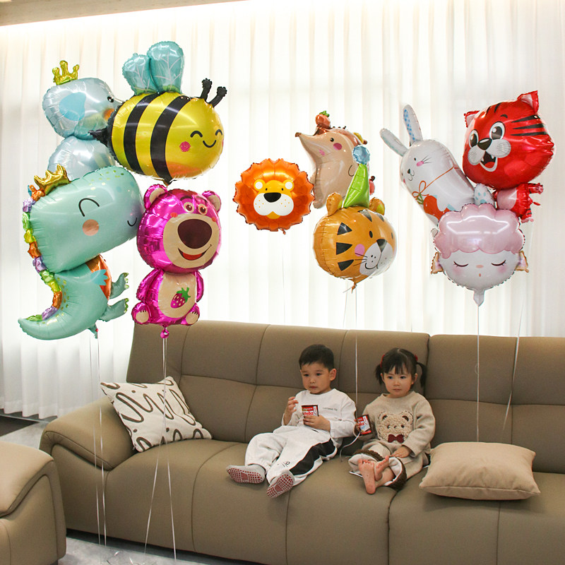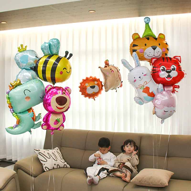卡通动物造型氦气飘空气球婴儿满月生日派对装饰宝宝绑腿玩具布置
