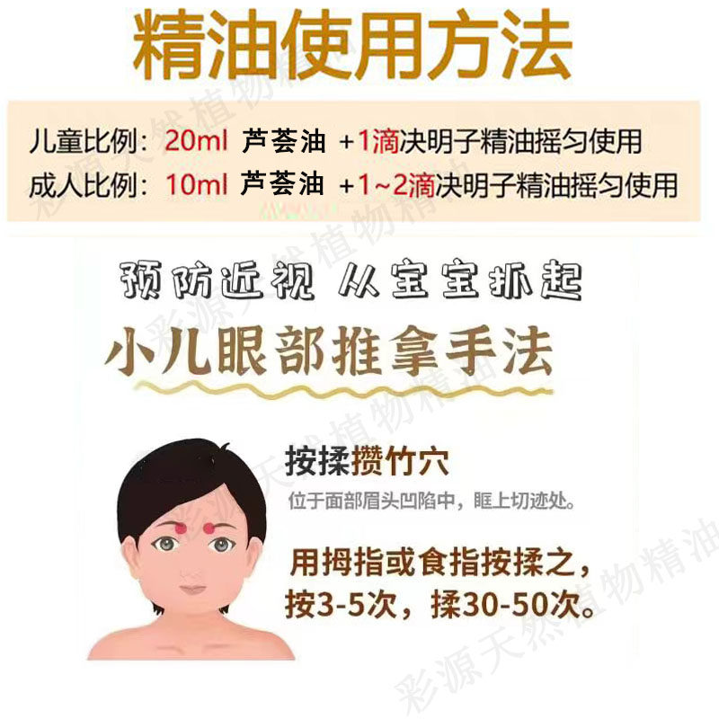 淘宝彩源天然植物精油,决明子精油儿童预防近视改善视力