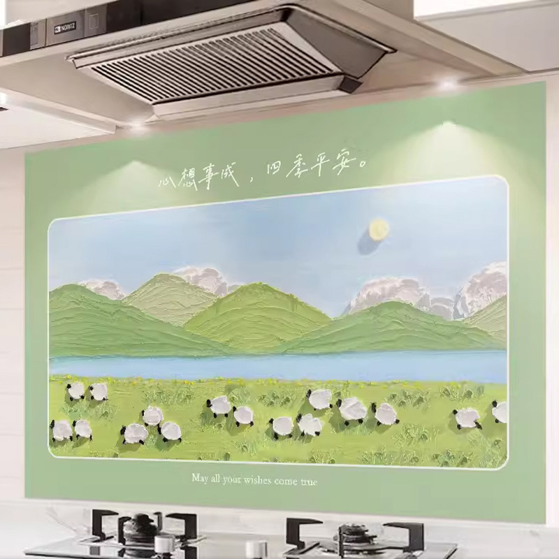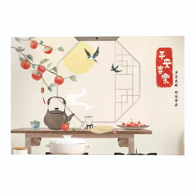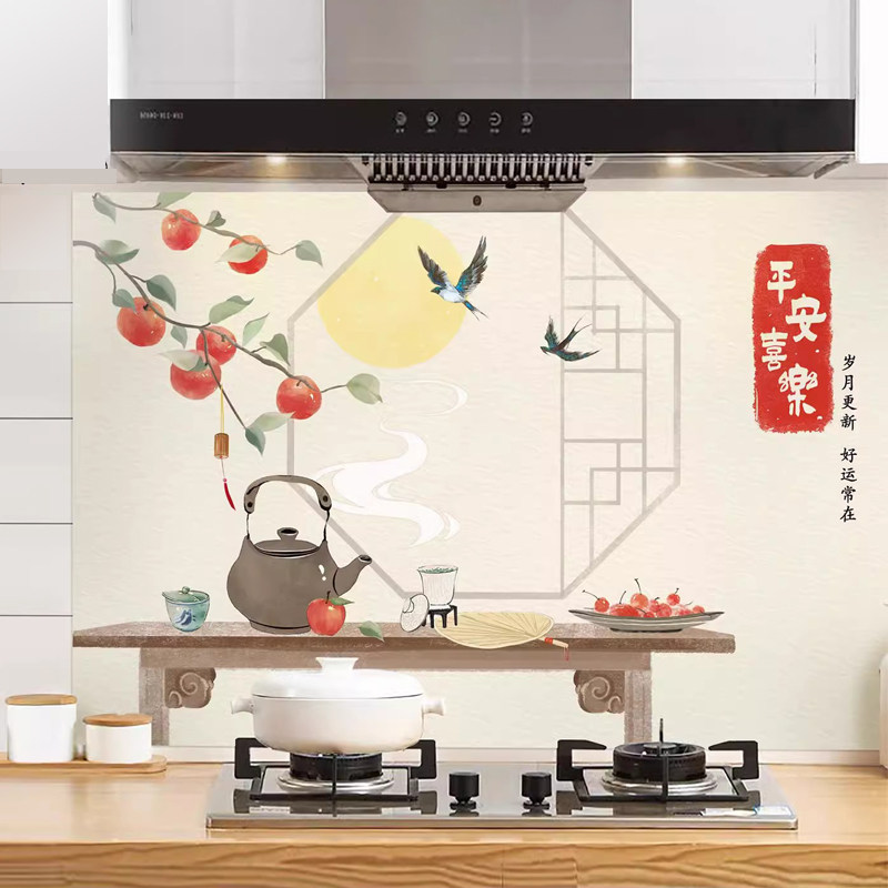 厨房防油贴纸防火耐高温墙贴防水灶台贴膜油烟机装饰自粘平安喜乐