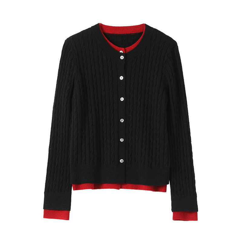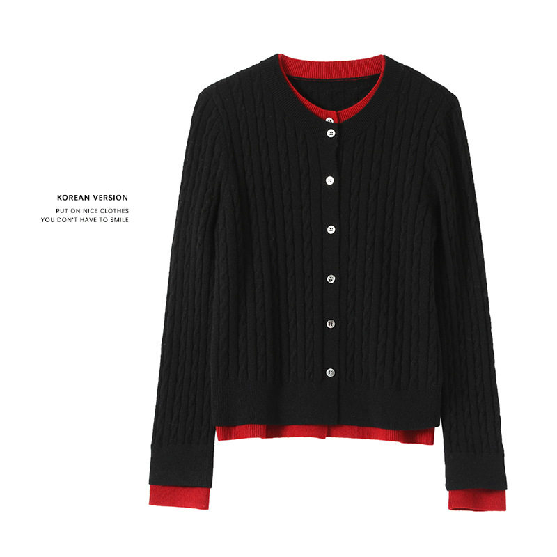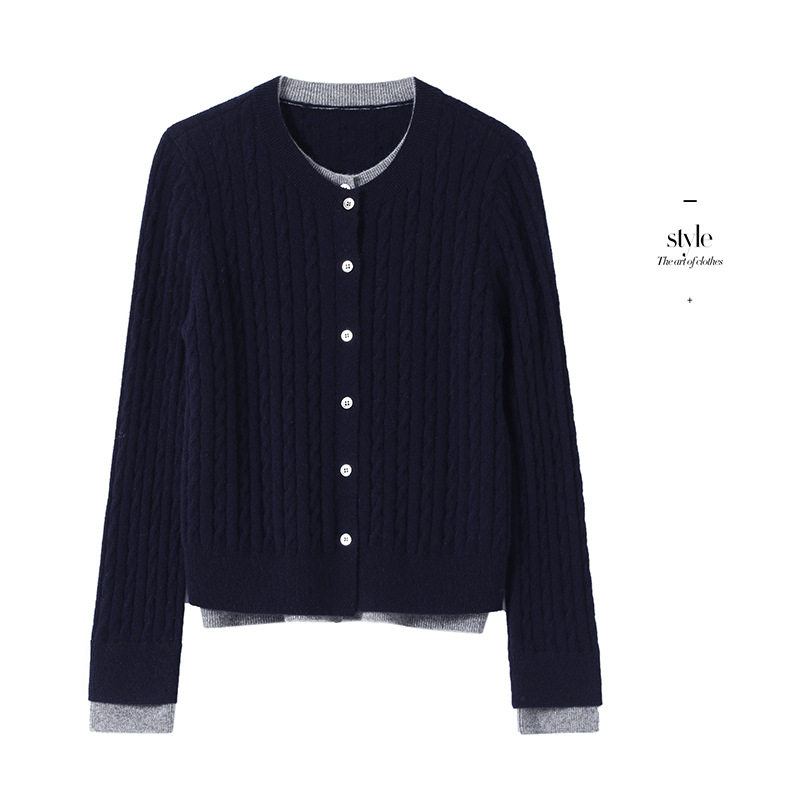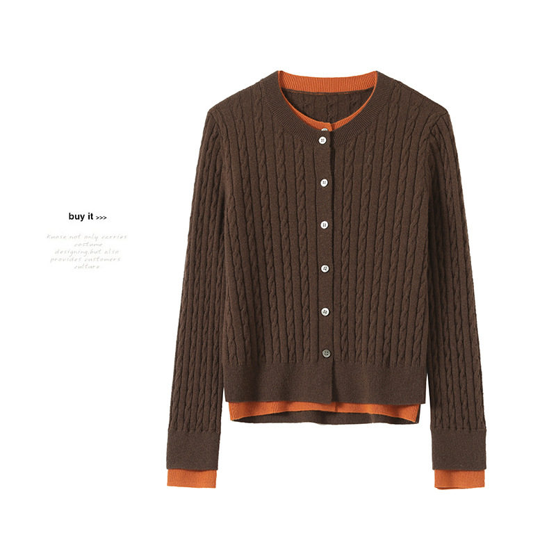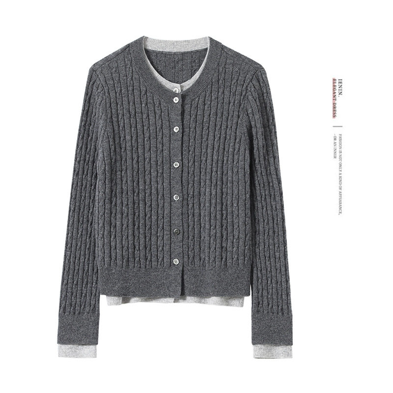 羊毛衫假两件圆领针织开衫