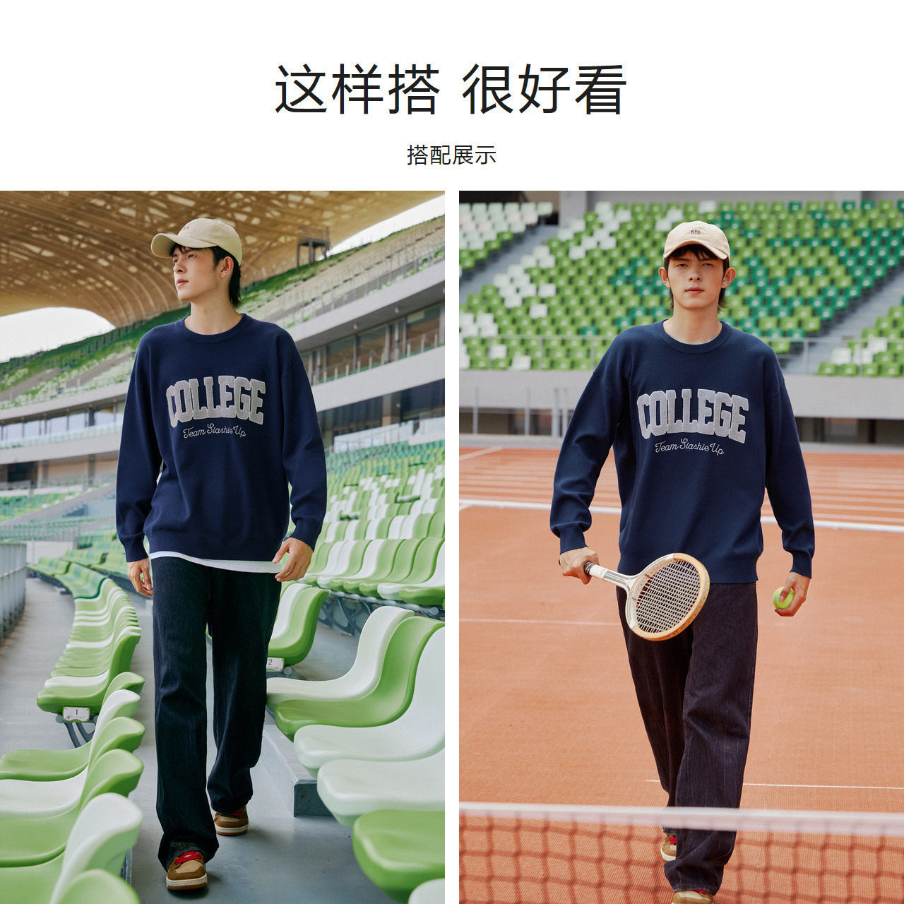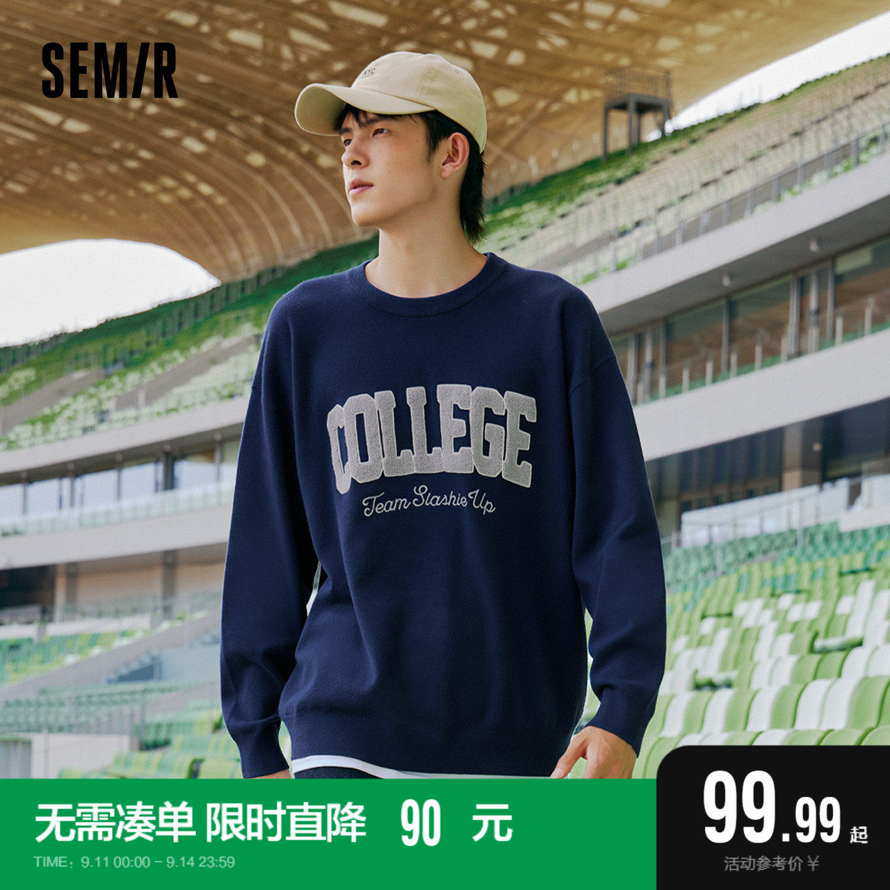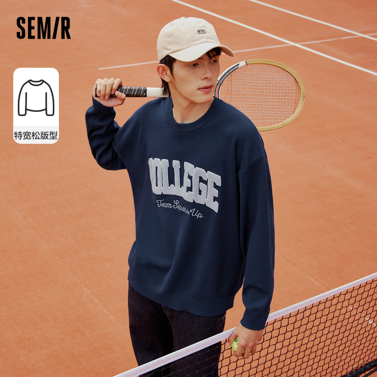 天猫森马官方旗舰店,森马男复古美式潮流2022秋冬针织衫,特宽松版型/介意可拍小一码 字母绣花