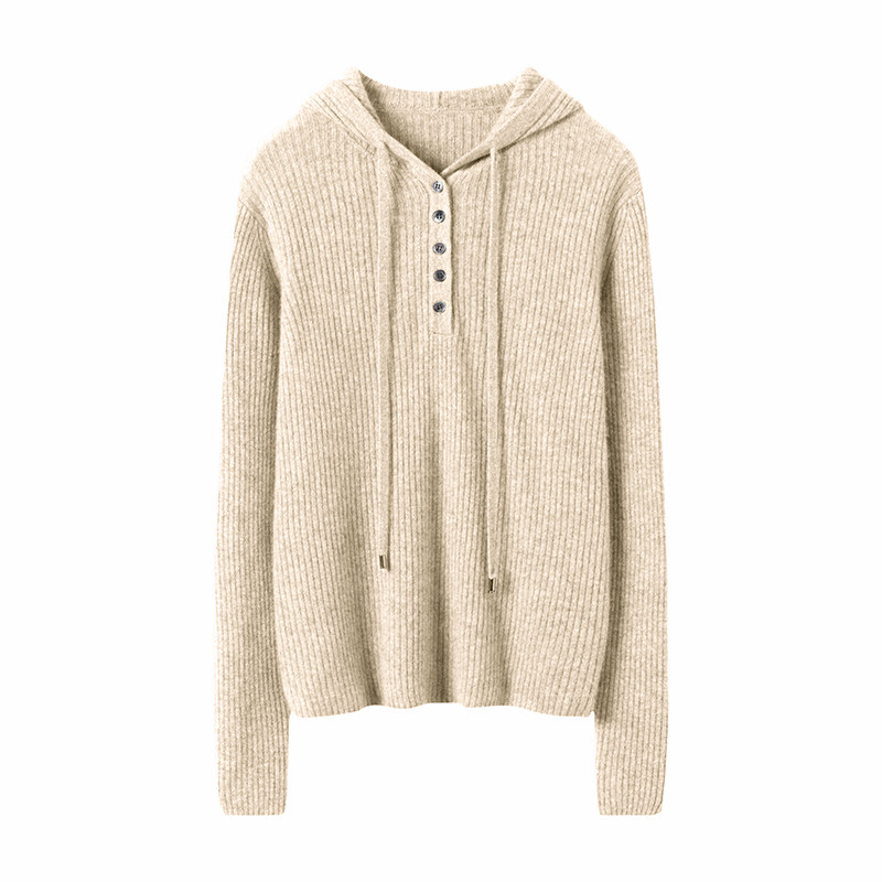 穿出高颜值!连帽羊绒衫女纯山羊绒毛衣针织…