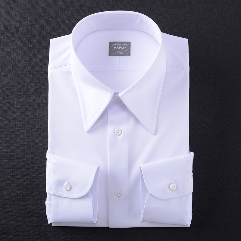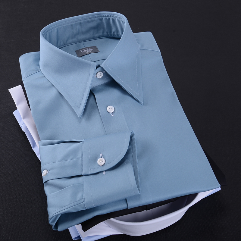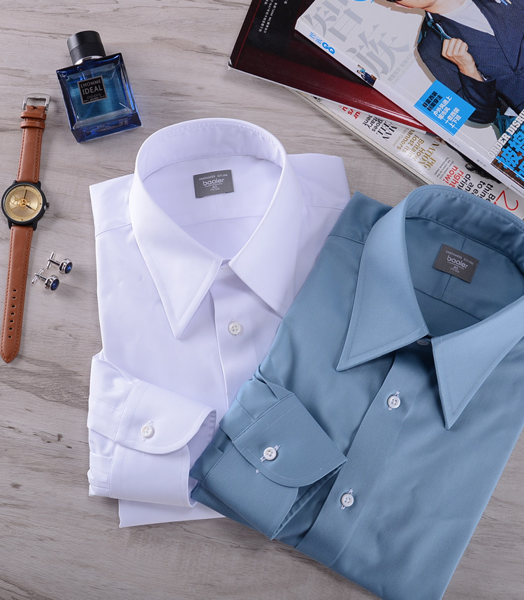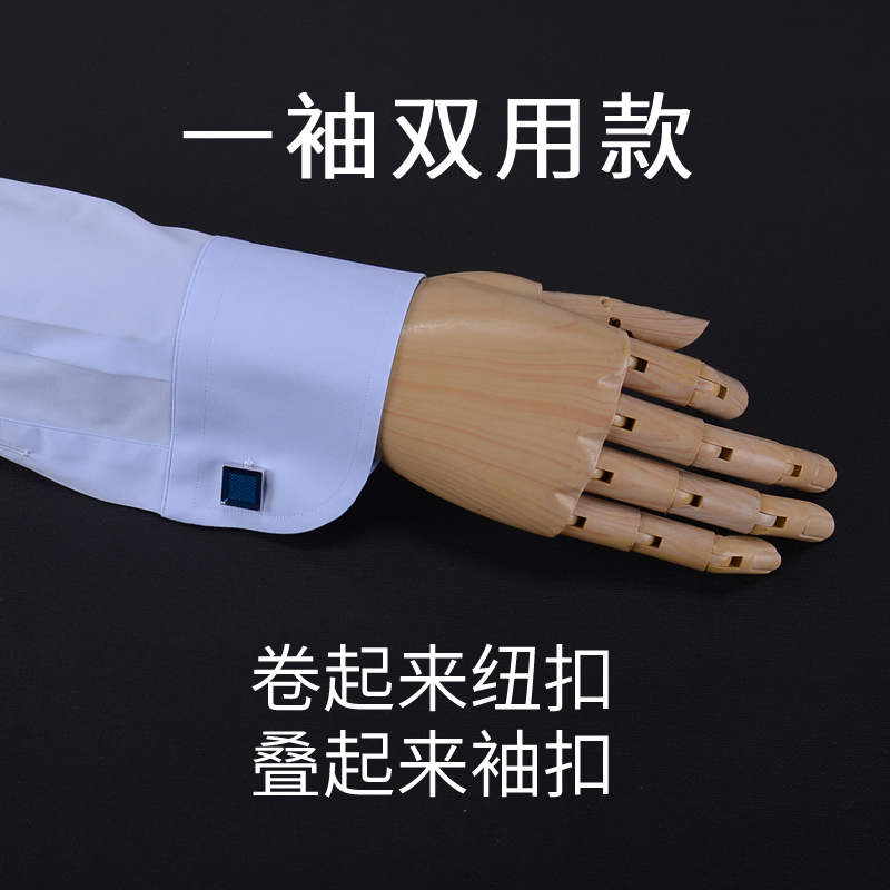 拜耳古典长袖男士衬衫古典喇叭袖尖领免烫白蓝黑微弹职业商务双用
