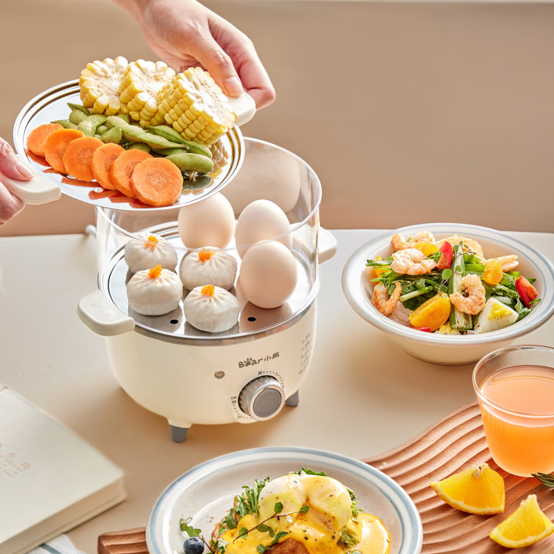 天猫小熊尚拓专卖店,Bear/小熊煮蛋器双层定时全自动,30分钟定时 不锈钢发热盘 蒸煮热双层多功能