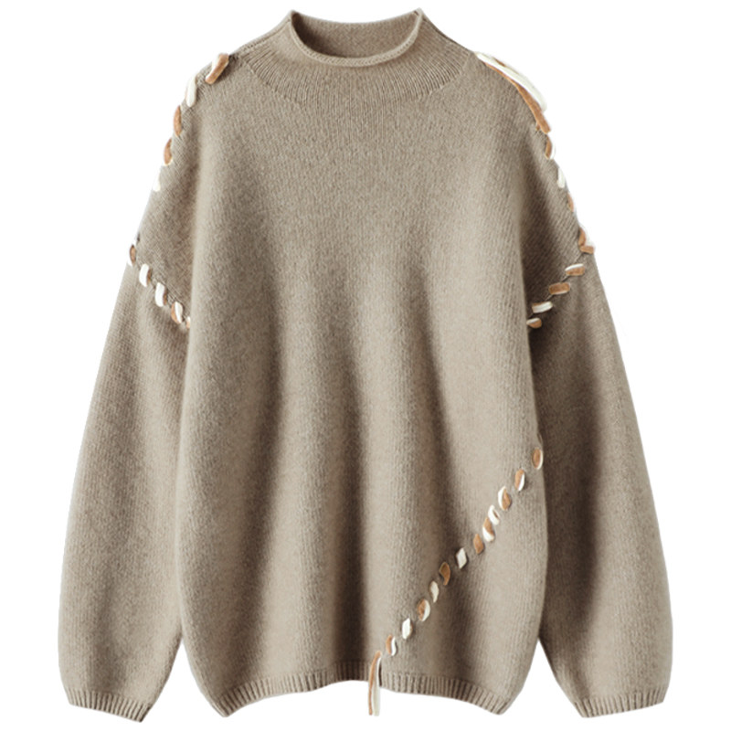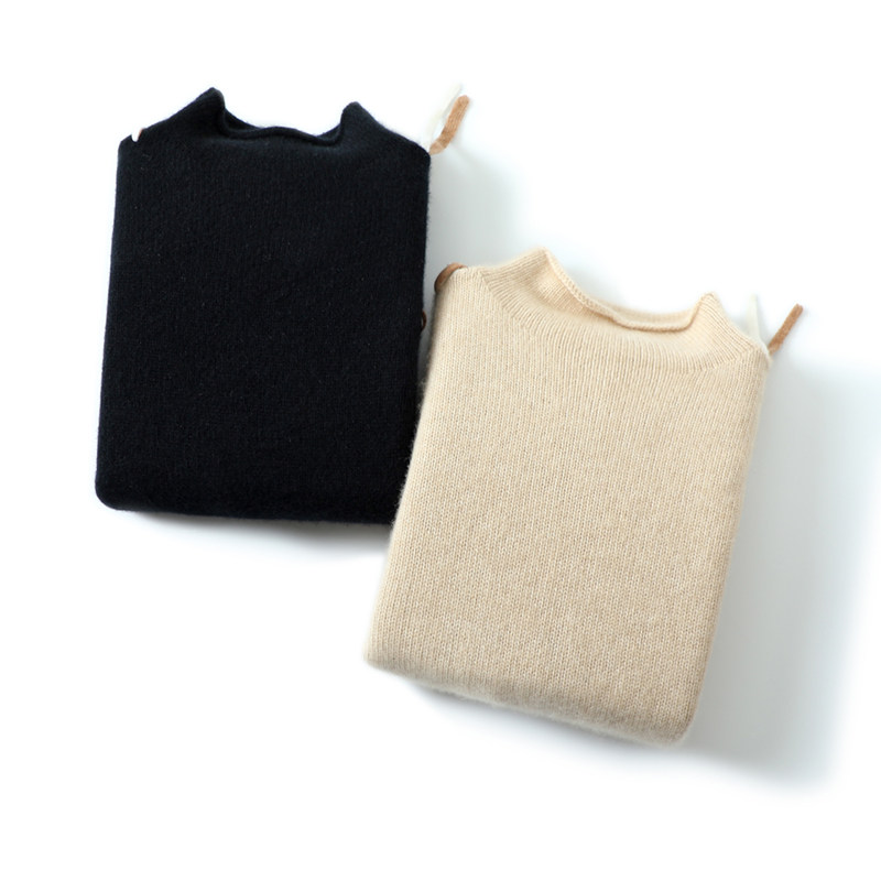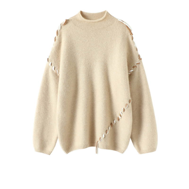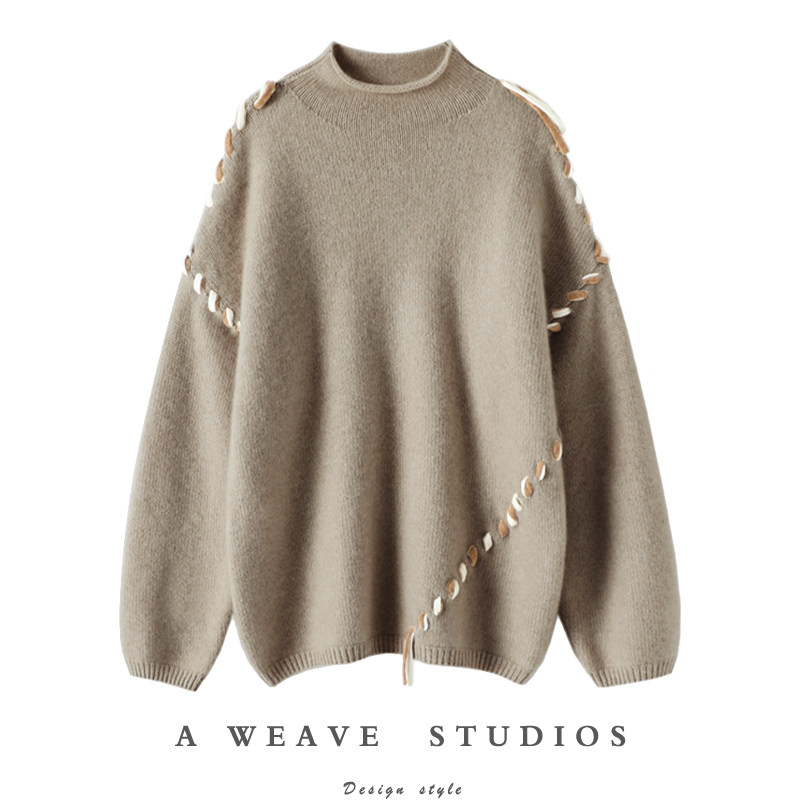 启超质感版型王道!彩绳半高领100%羊绒衫女加厚纯羊绒毛衣宽松冬