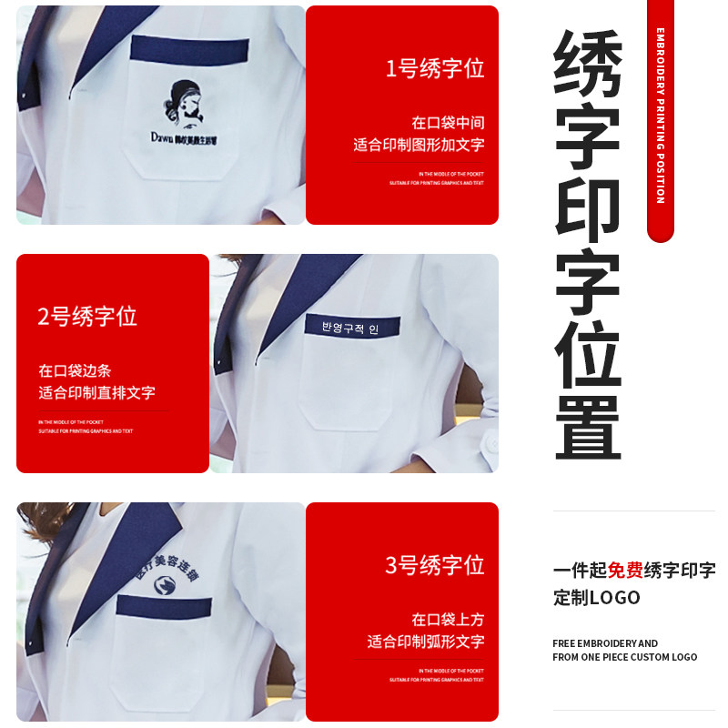 天猫妆思旗舰店,美容师工作服白大褂专业,品质保证,免费加字,显瘦版型不起球不变形