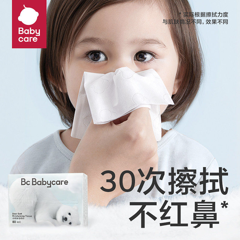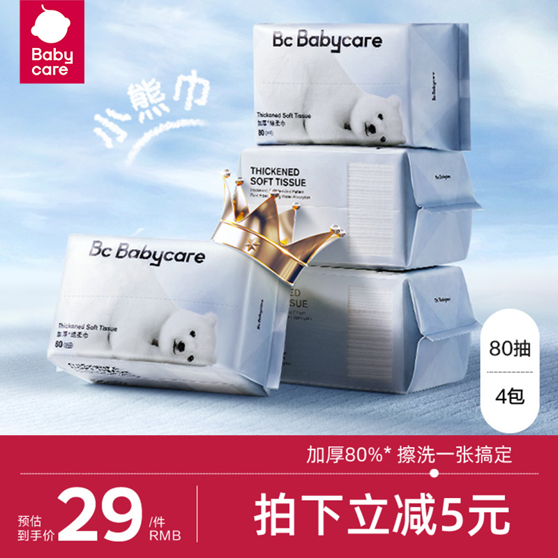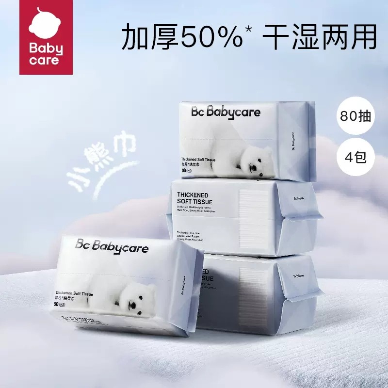 babycare绵柔巾bc小熊洗脸巾80抽干湿两用宝宝新生婴儿专用手口