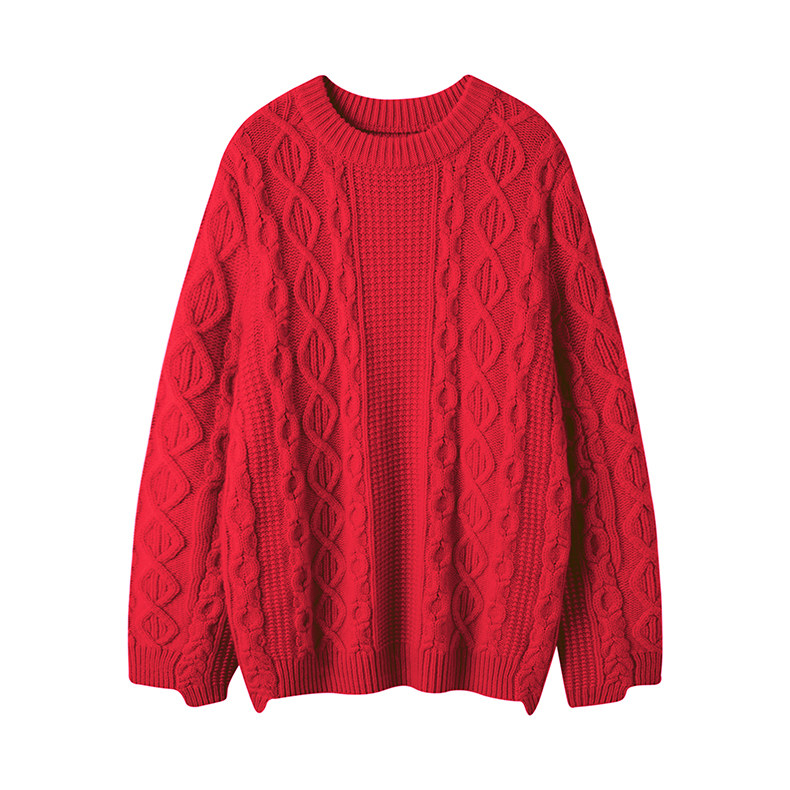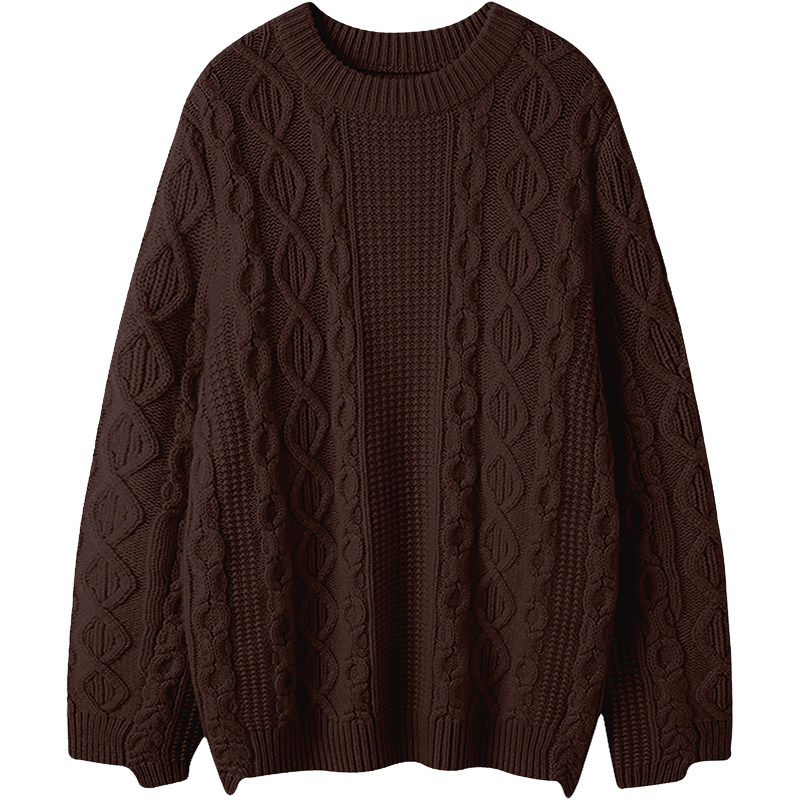 棕色系天花板~羊绒衫女圆领纯羊绒毛衣加厚宽松慵懒风
