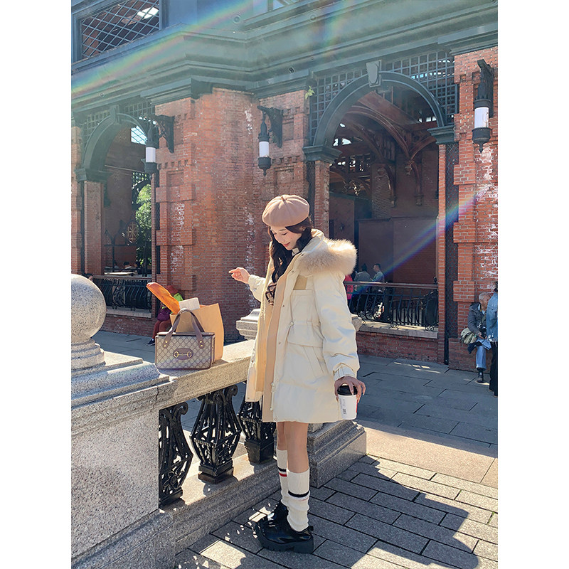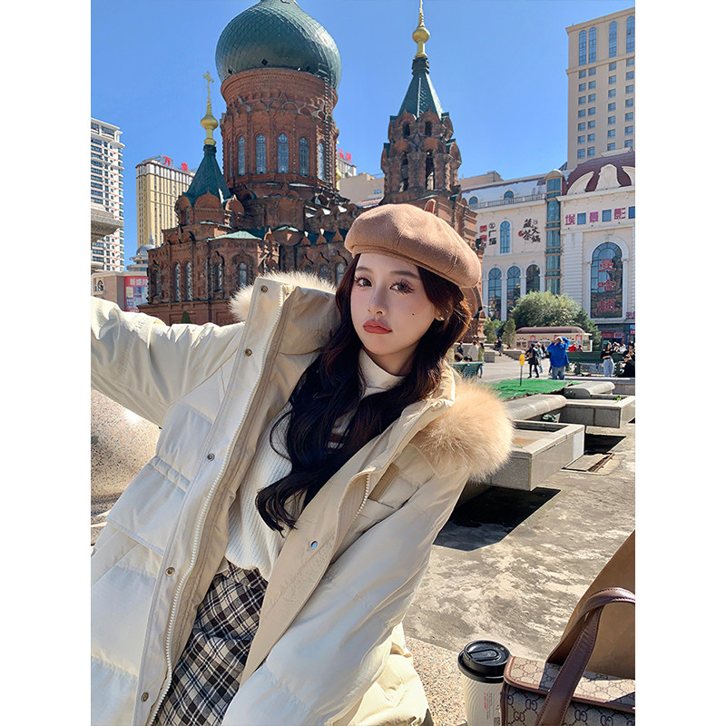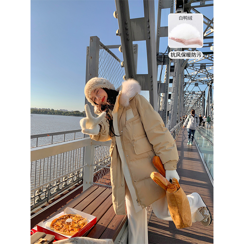 铅笔小鑫大码女装宽松过膝中长款大毛领羽绒服秋冬加厚保暖外套