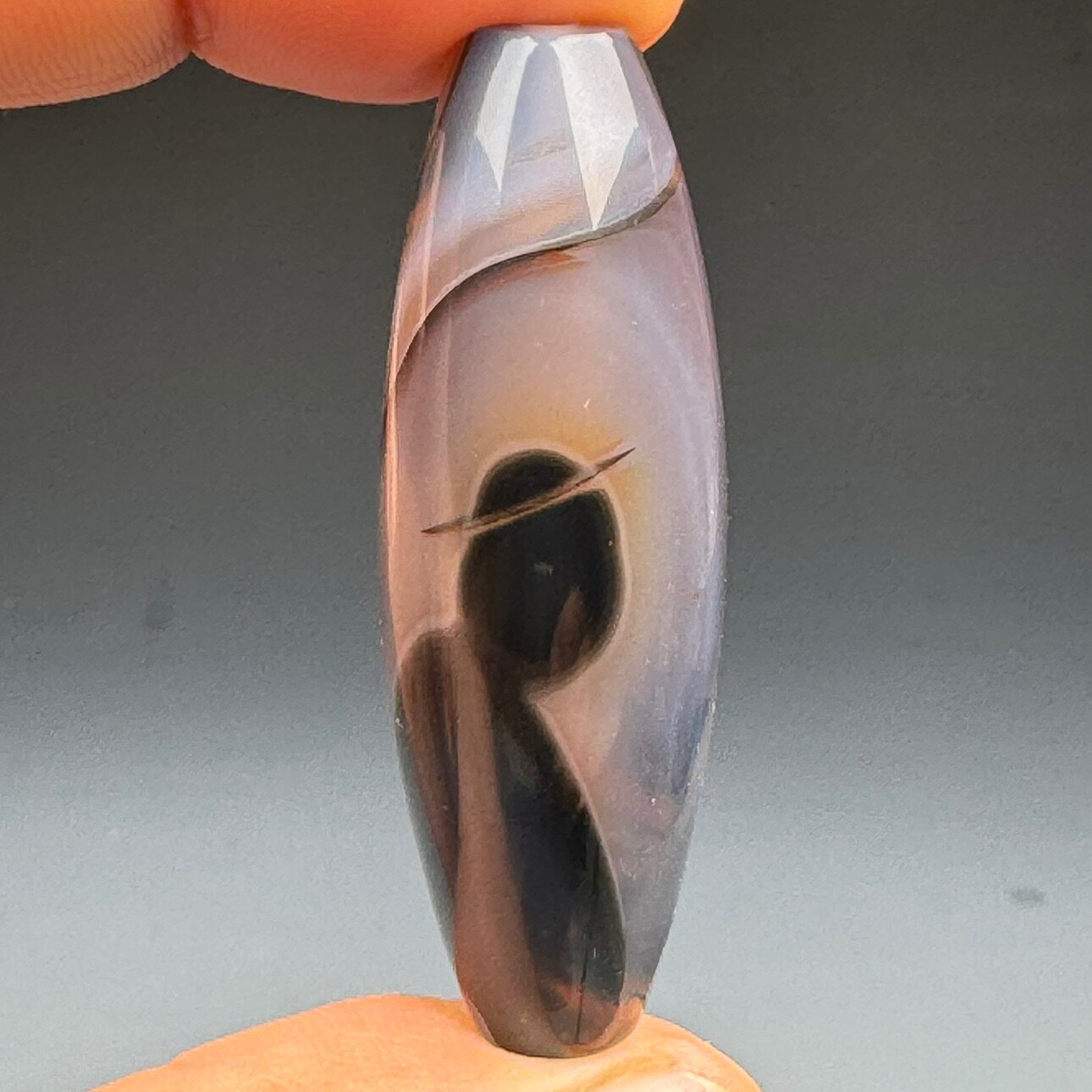 天然天珠原石打磨巴玉巴西玛瑙象形眼睛石奇石珠子吊坠把玩 010