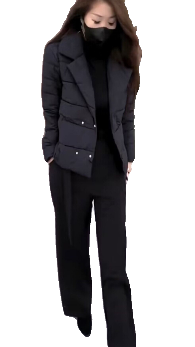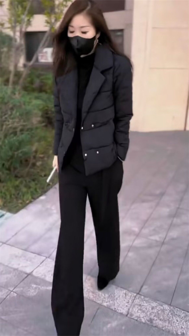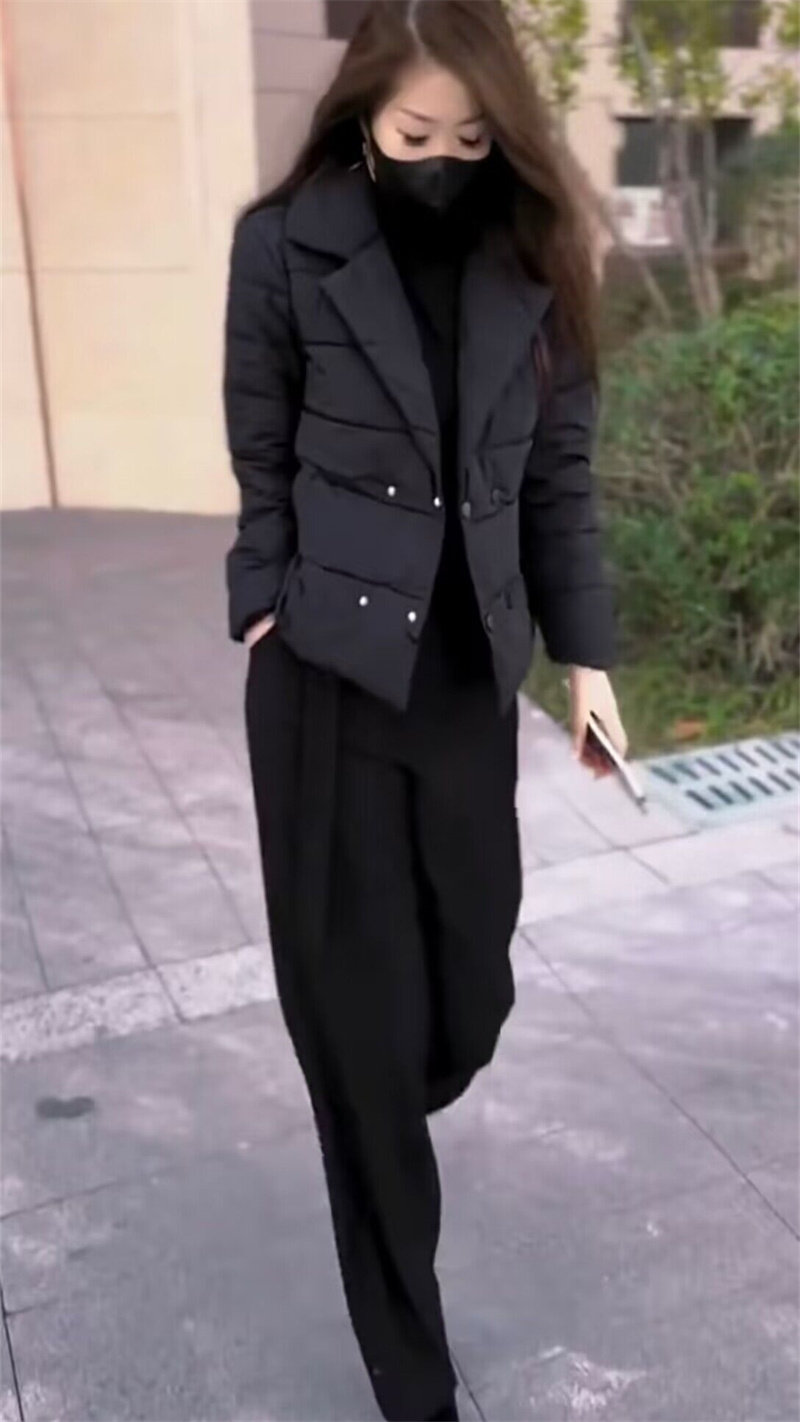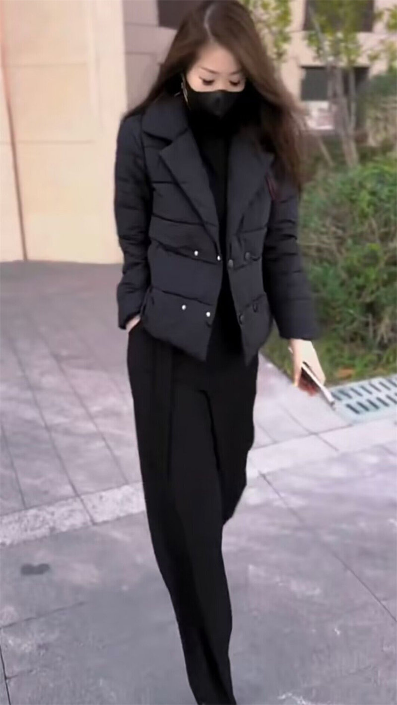 抖音网红爆款2023年冬季新款气质时尚百搭显瘦西服领棉服外套裤子