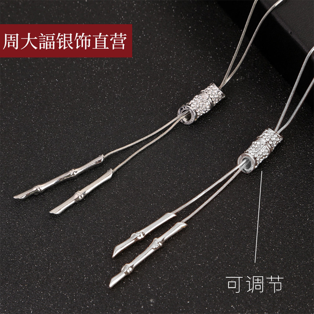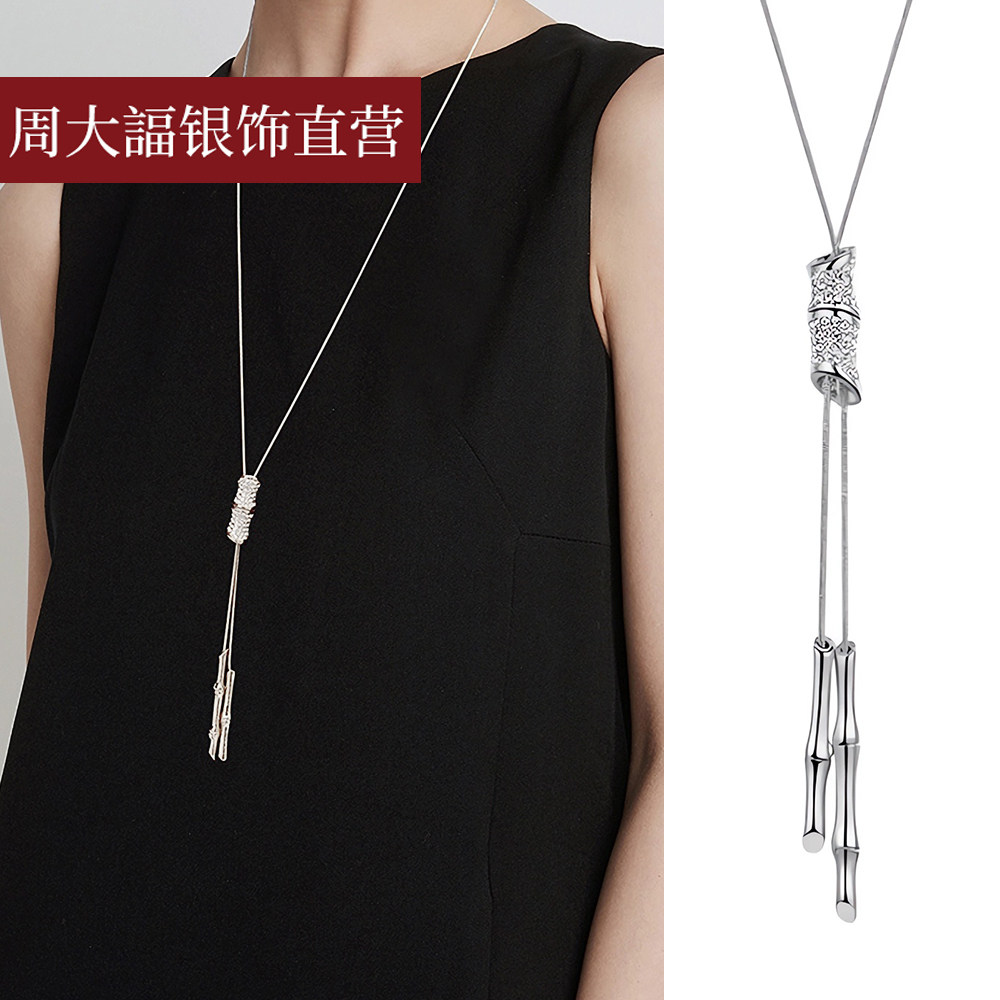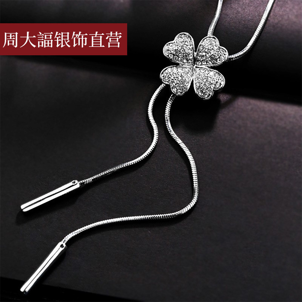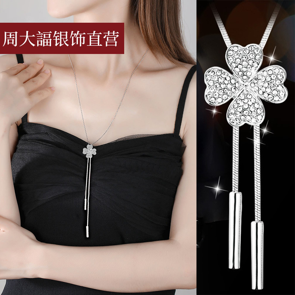 周大諨足银四叶草毛衣链气质设计感女长款吊坠轻奢项链配饰