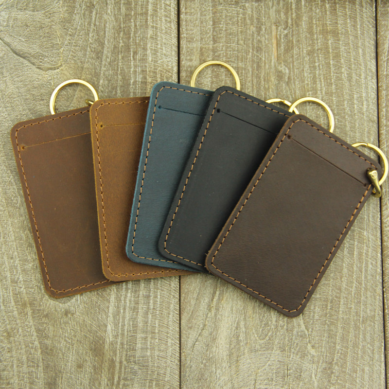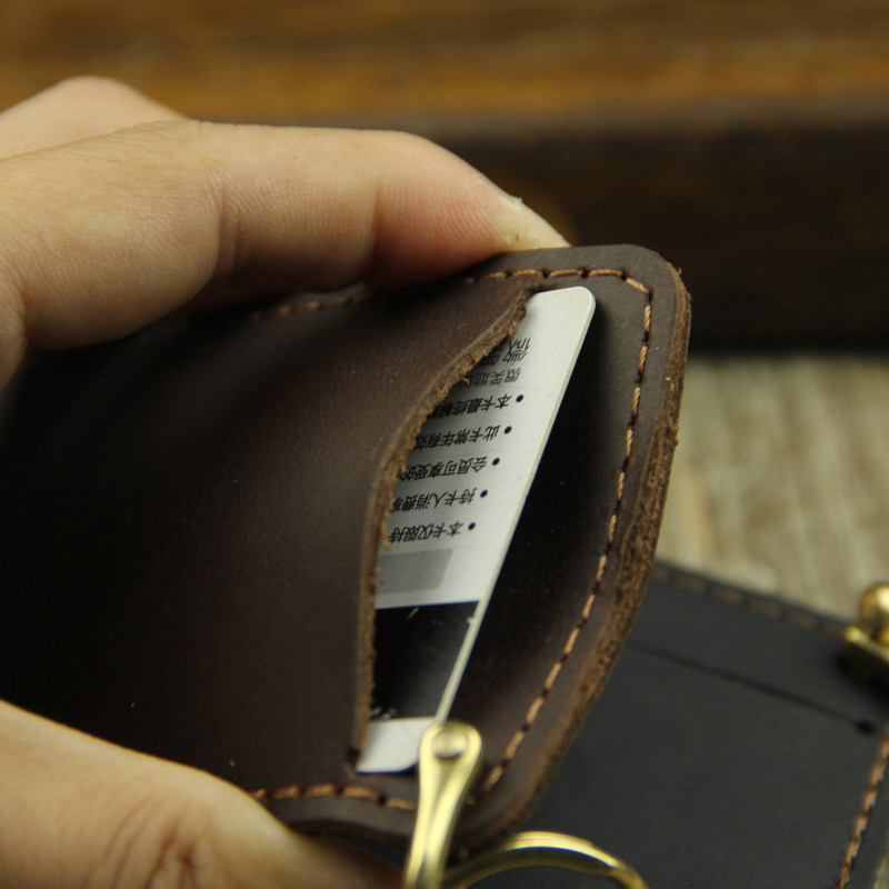 手工牛皮门禁卡套黄铜马蹄扣公交卡套疯马皮学生校园一卡通门卡套