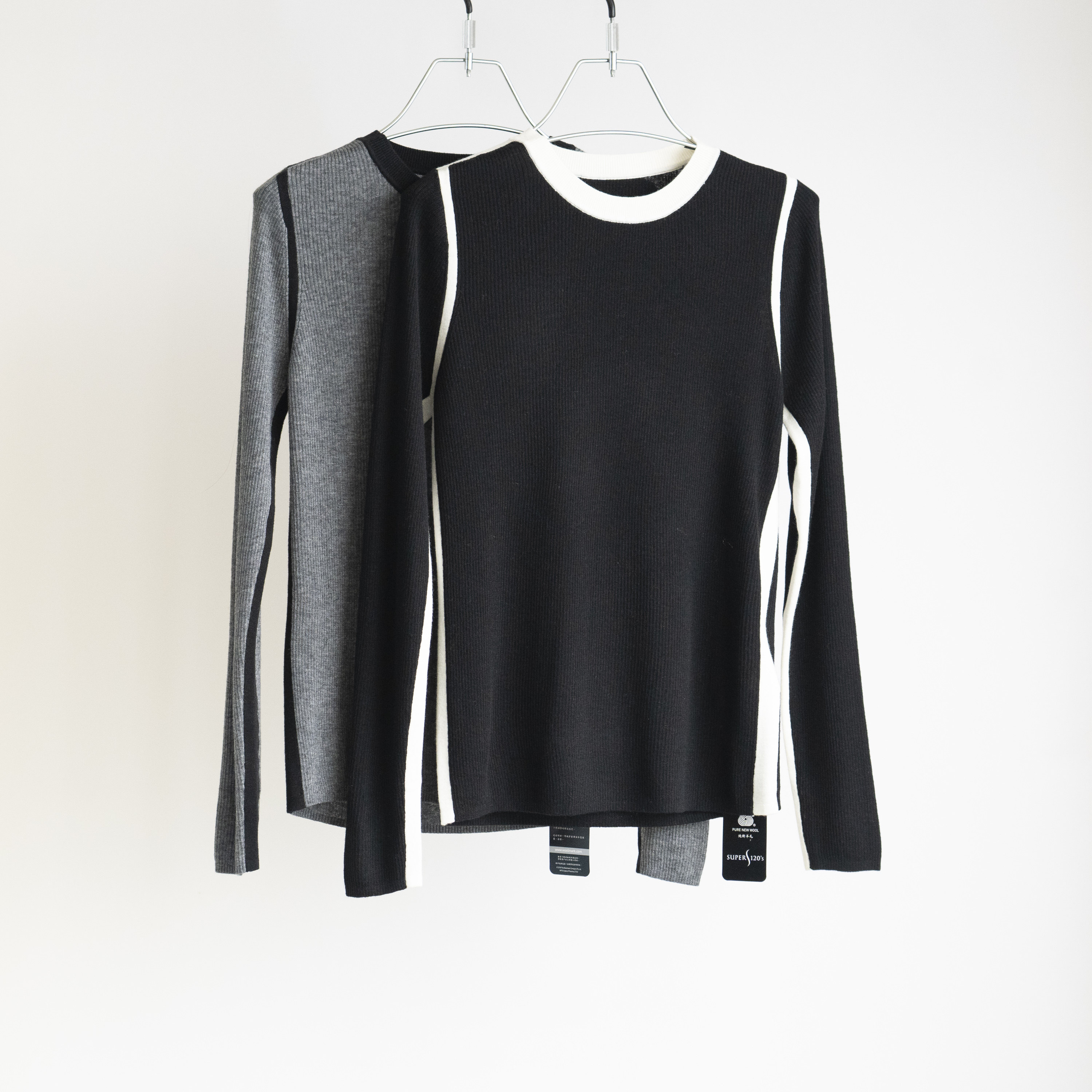 温柔气质 120支细羊毛 ins撞色打底外穿两用薄款针织衫