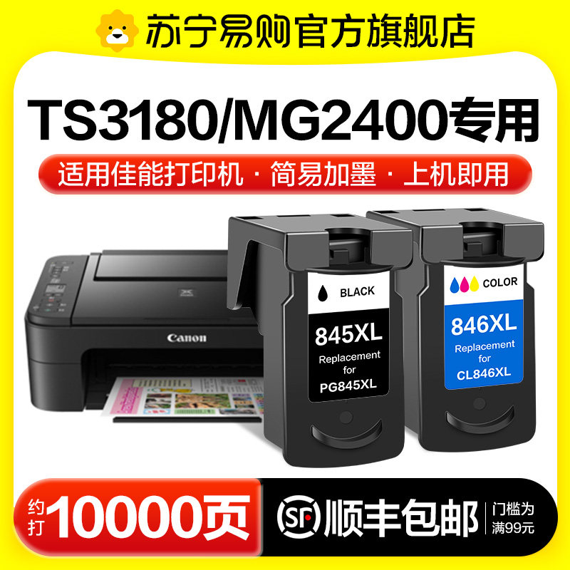 天猫苏宁易购官方旗舰店,适用佳能TS3180墨盒MG2400打印机专用PG845黑色CL846彩色3180 2400可加墨连喷连供墨水非canon原装图盛1716