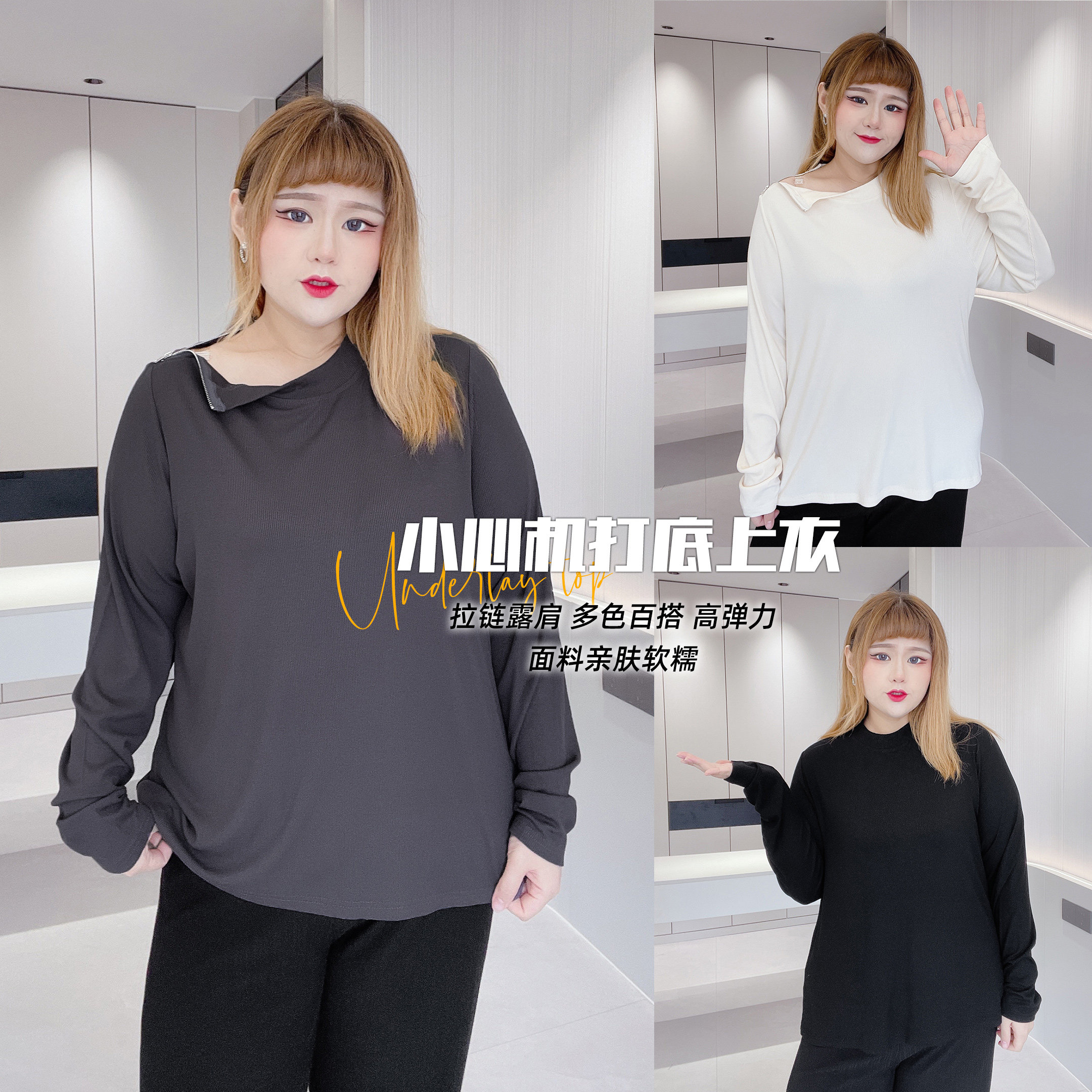 肉嘟嘟的胖莹莹大码女装简约项链拉链基础款多色弹力休闲通勤上衣