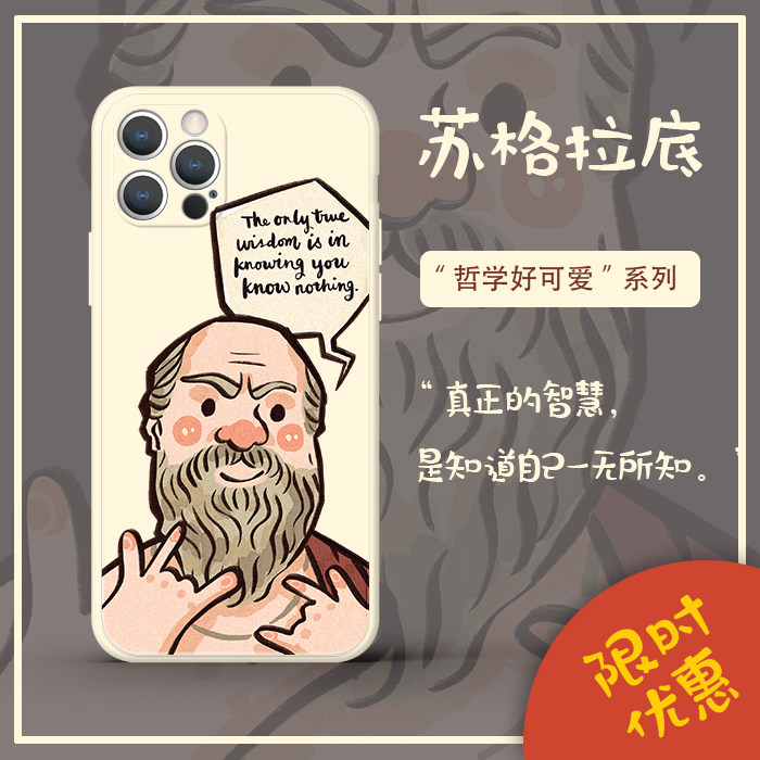 适用苹果15promax手机壳iPhone14/13/12苏格拉底哲学好可爱奥狸原创设计哲学哲理人生华为保护壳创意液态直边