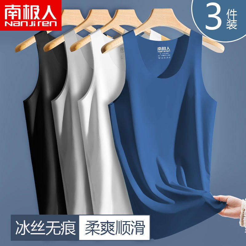 南极人男士冰丝背心内穿无痕夏季薄款白色打底男生款夏天大码坎肩