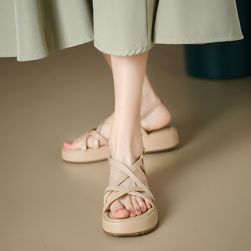 凉鞋女款夏季外穿2024新款厚底高跟踩屎感休闲罗马鞋网红外出软底