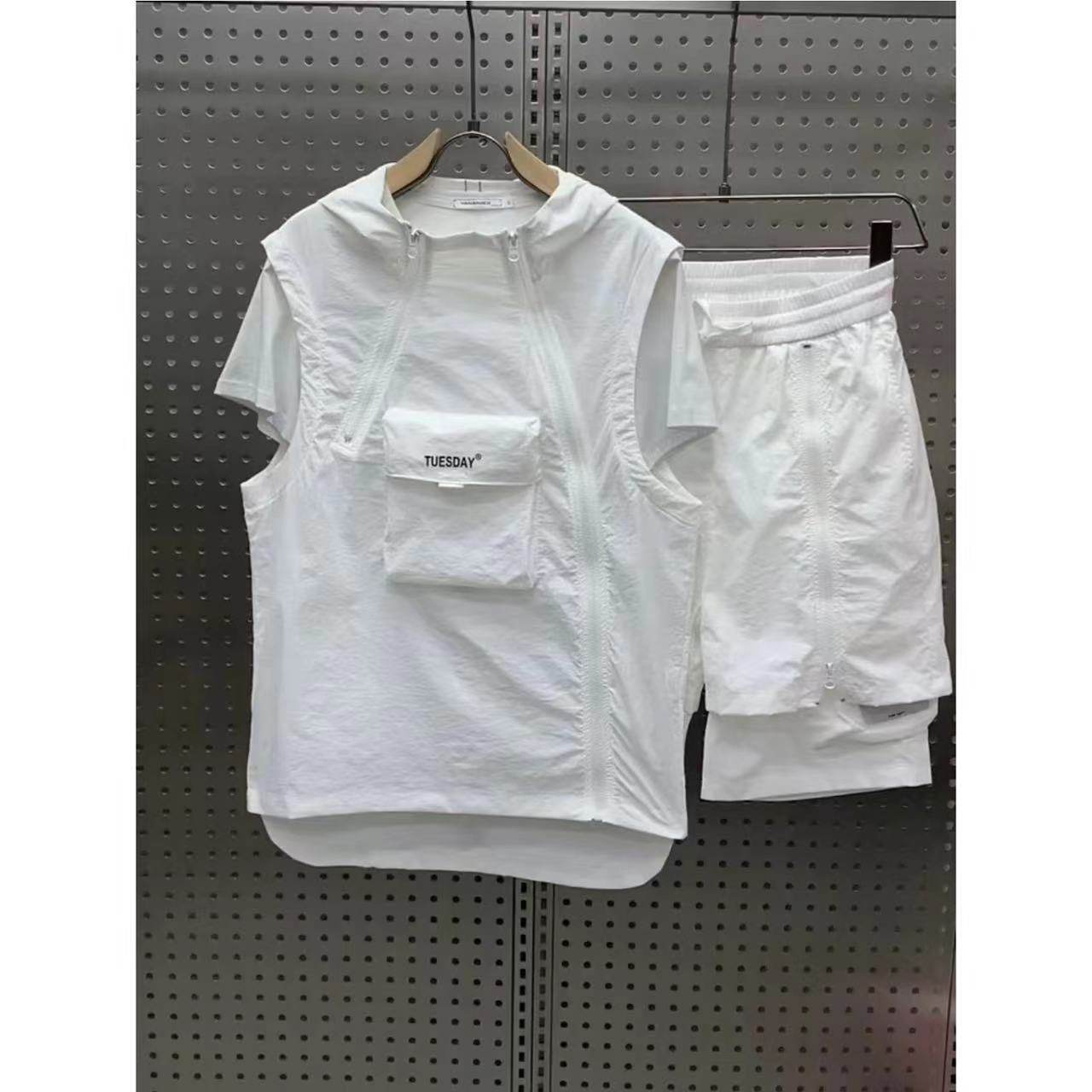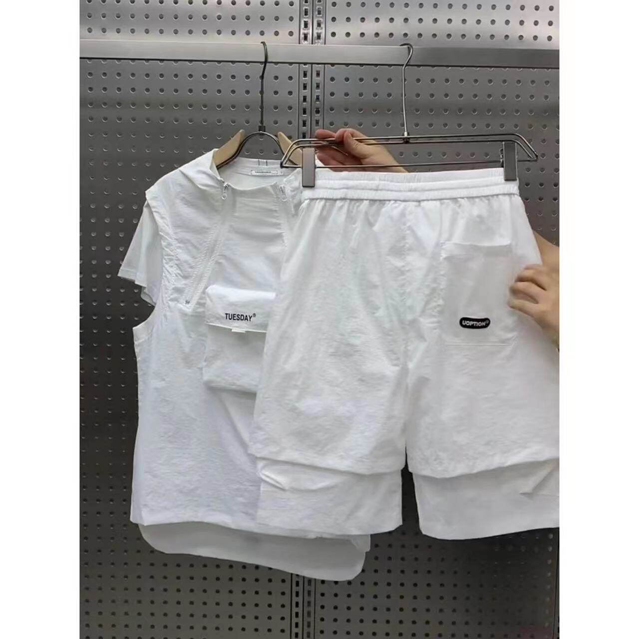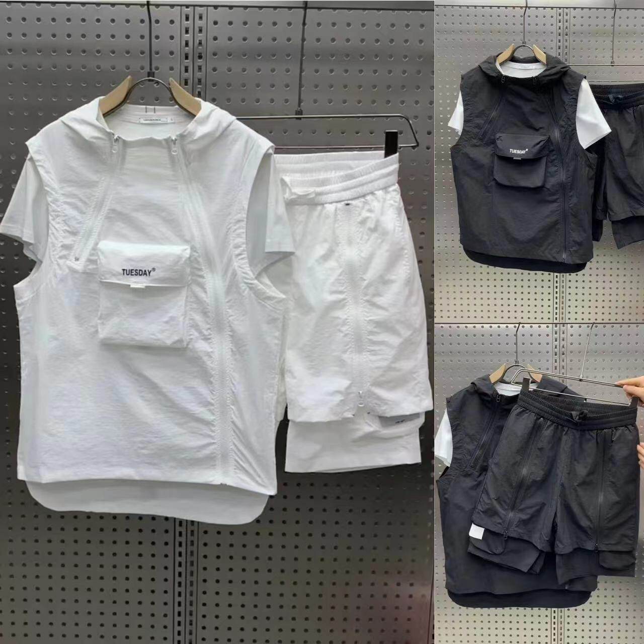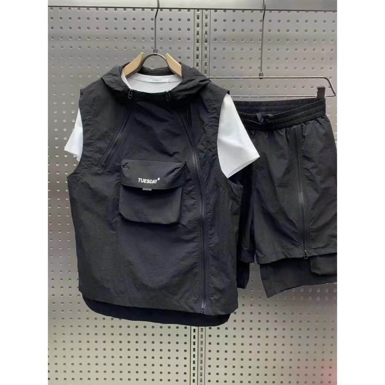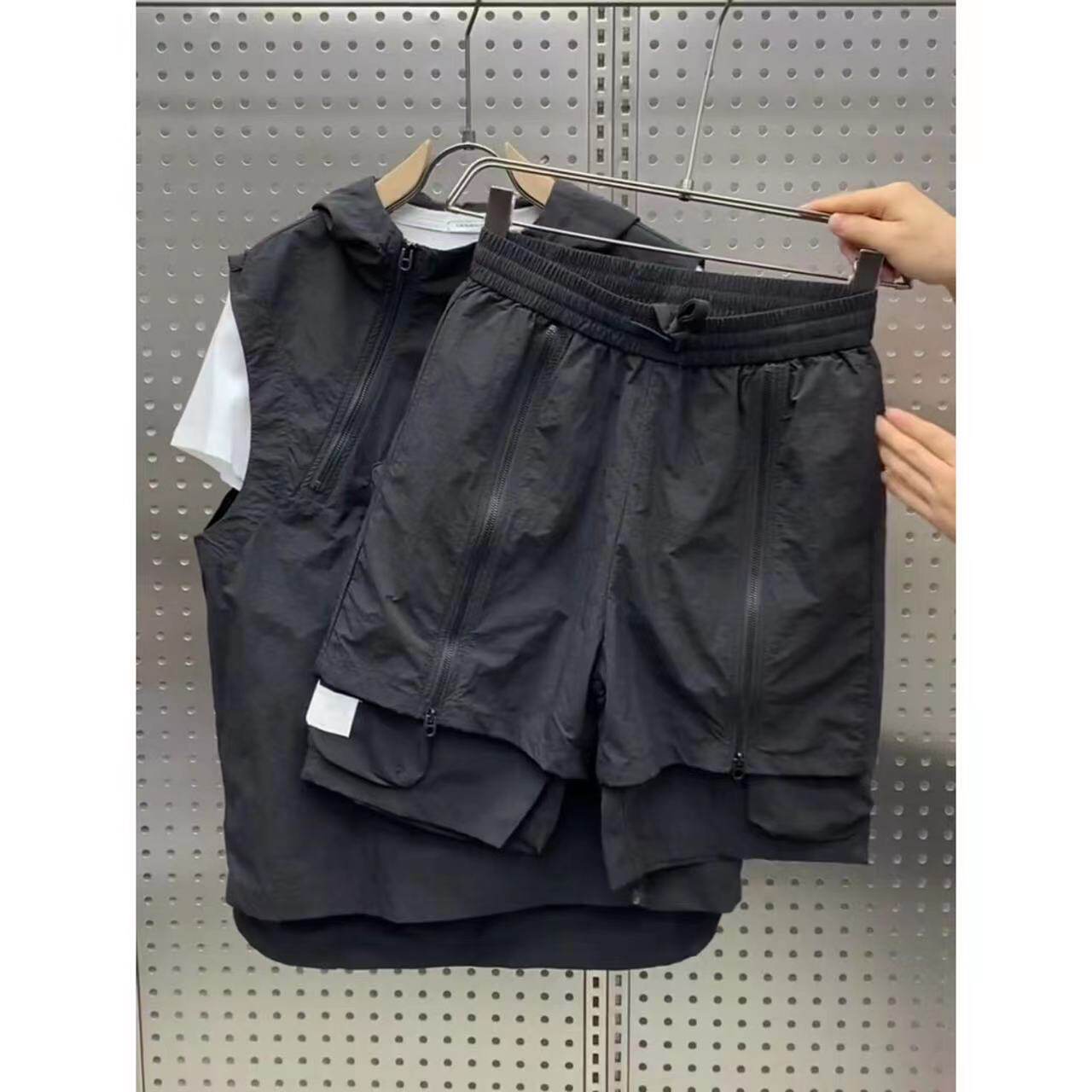 淘宝浩童的店,夏季新款休闲运动套装男工装拉链马甲短裤两件套青年流行百搭一套