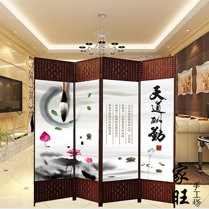 淘宝哈哈子的小店,包邮草编屏风布艺隔断折叠家居酒店茶楼风景田园藤编松木移动客厅