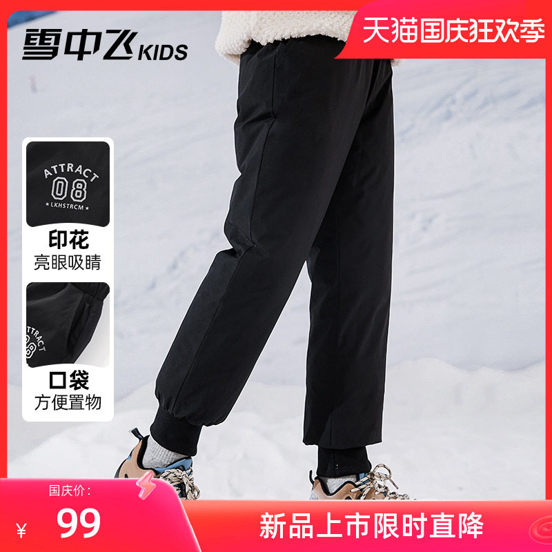 雪中飞童装男童羽绒裤2023冬季新款保暖裤子中大童女童儿童羽绒裤