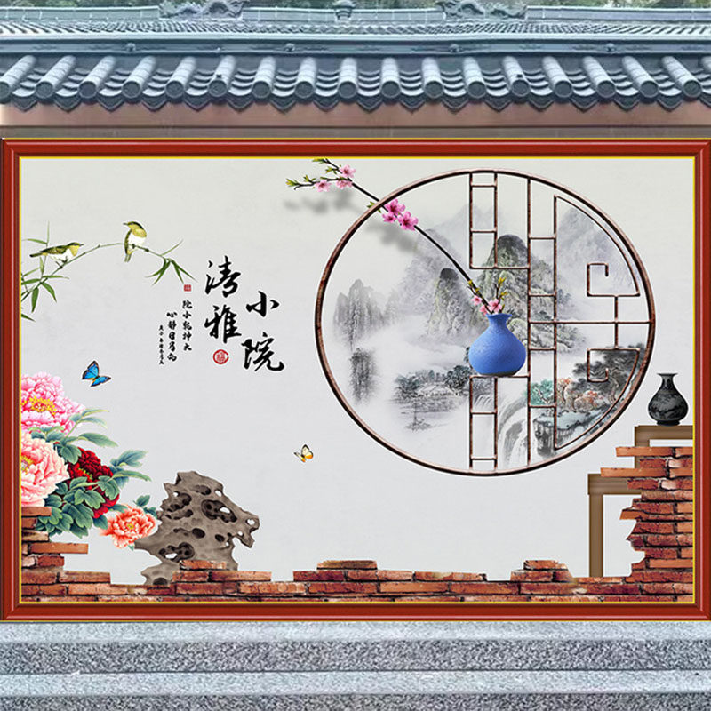 淘宝素雅壁纸专属定制,户外迎门墙小院防水防晒墙贴画