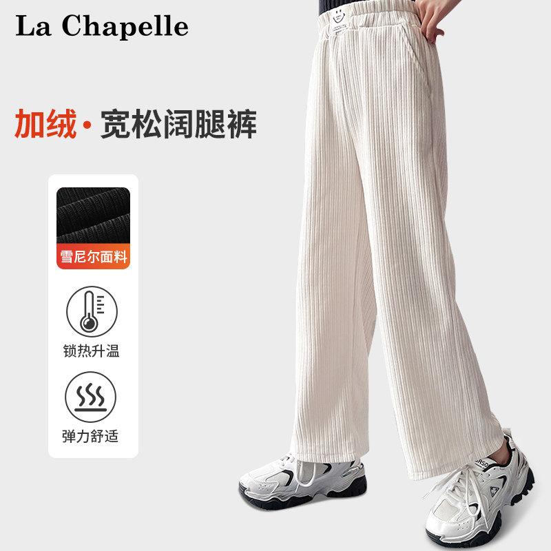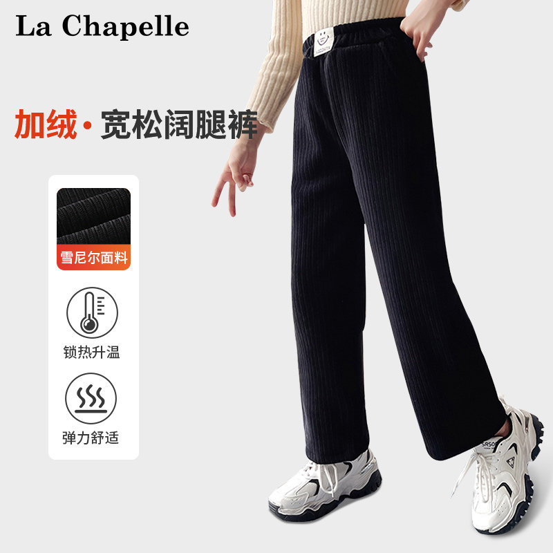 天猫lachapellemini旗舰店,拉夏贝尔女童裤子春秋款2023新款儿童加绒阔腿裤女孩时髦秋装长裤